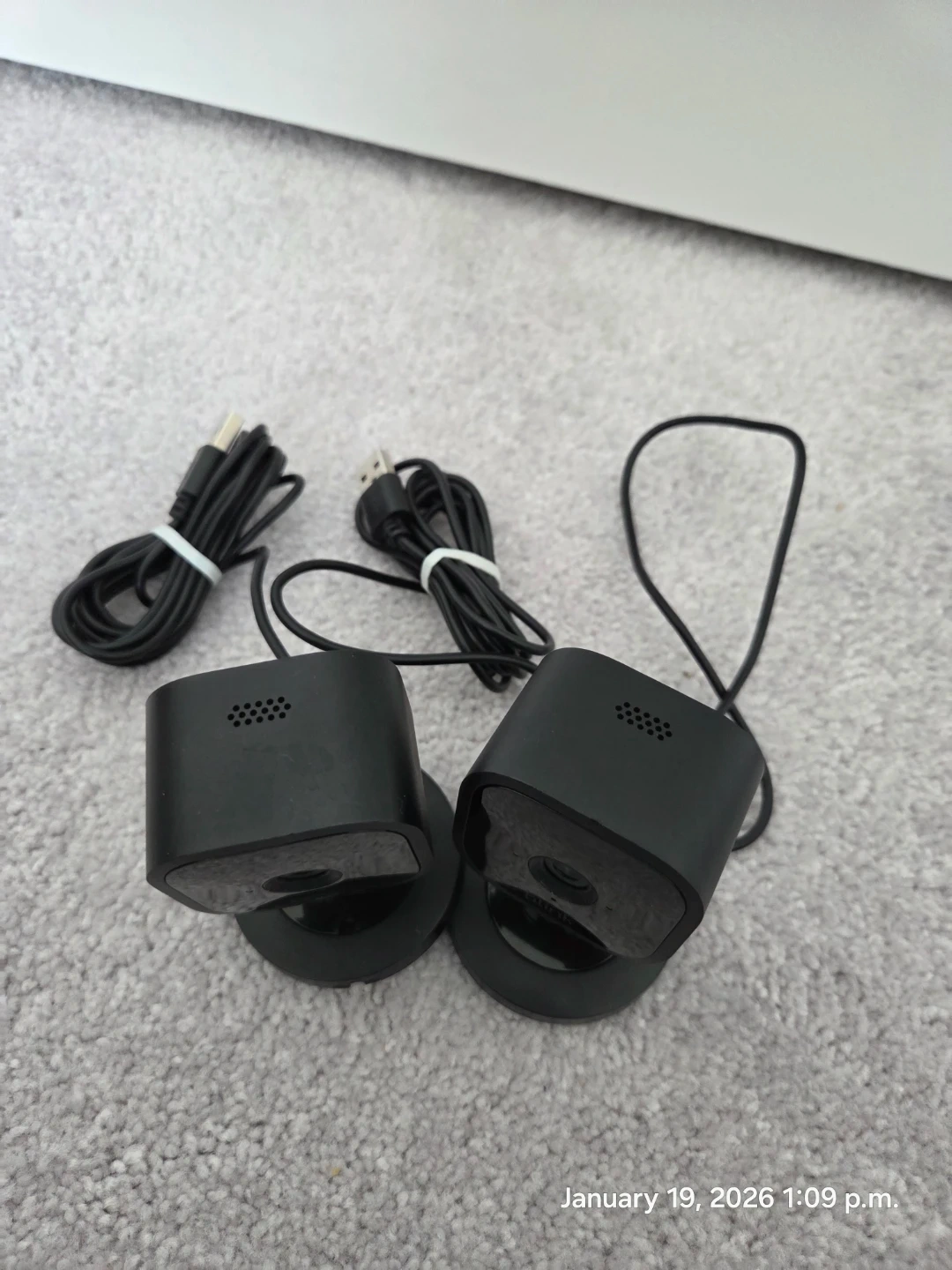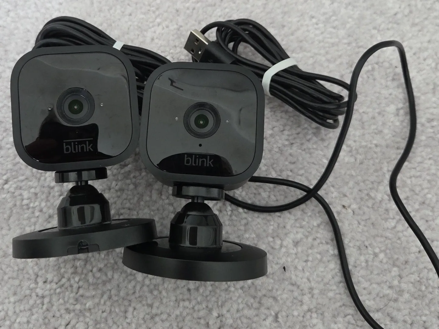 Selling a set of Blink Mini indoor cameras. They are in great condition and ready to use! These cameras are perfect for keeping an eye on your home, pets, or kids. They are lightweight and portable, making them easy to set up anywhere you need them