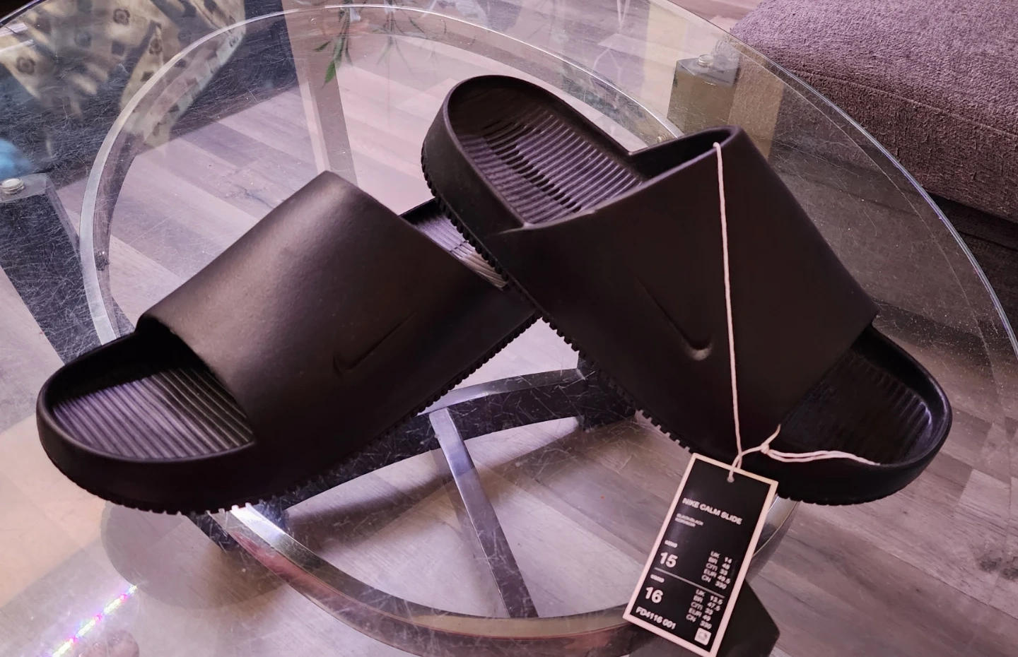 Brand new men’s Nike Calm slides, size 15. Fit runs small — I usually wear a 14 and sized up to a 15, but they fit closer to a 13/14.