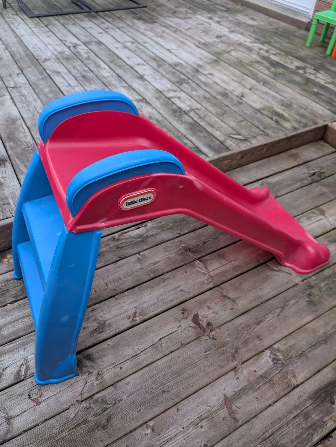This is a Little Tikes toddler slide. It's made of durable plastic and designed for young children. Perfect for indoor or outdoor fun!