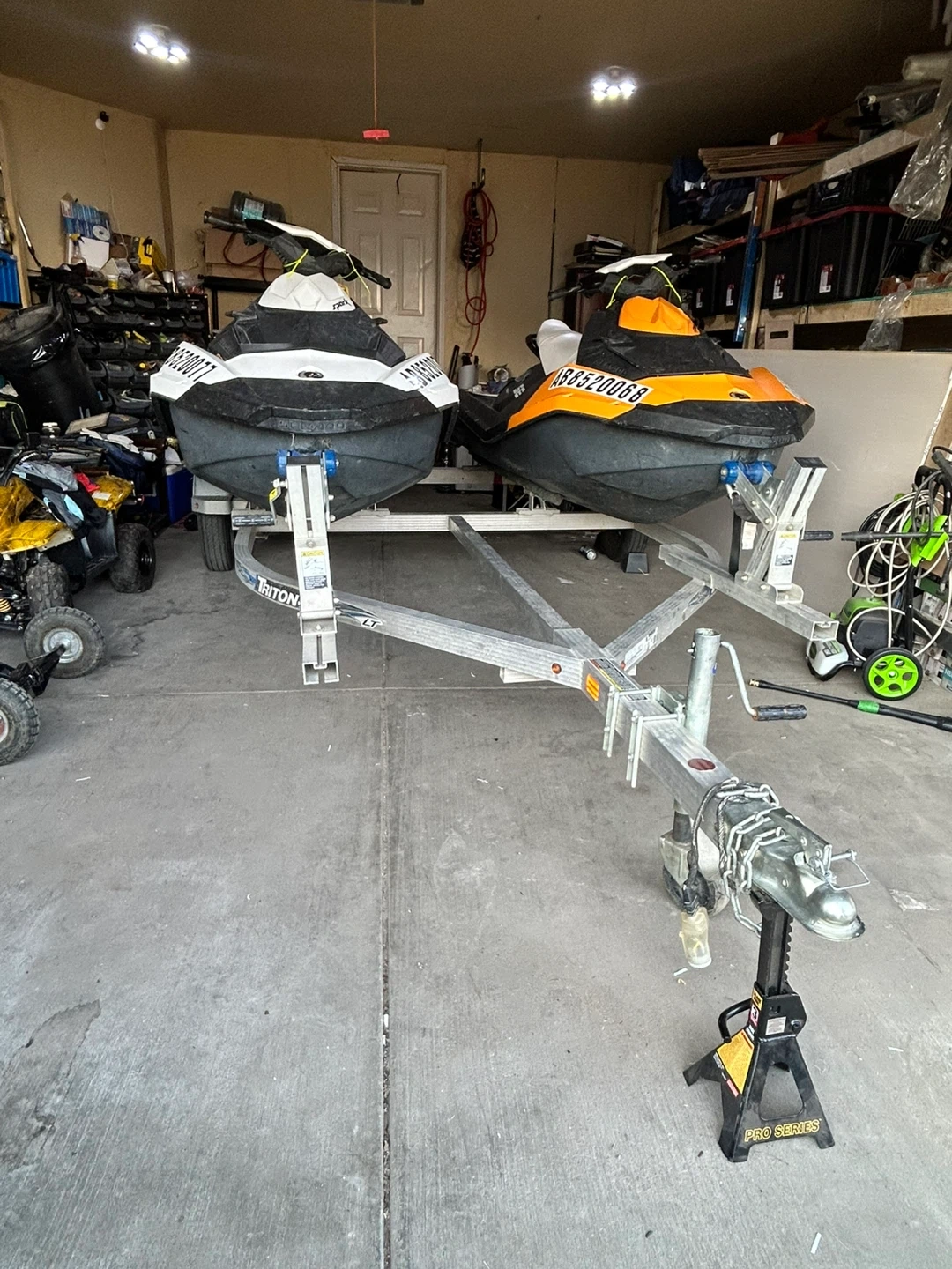 15Selling 2 Sea-Doo Spark jet skis with the triton trailer and accessories. One is 2 up and one is 3 up. Both 2015. Serious inquiries only. No trades.