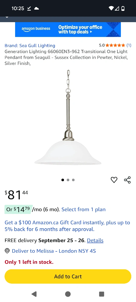 Selling a Sea Gull Lighting pendant light from the Sussex Collection. It features a transitional one-light design with a pewter, nickel, and silver finish. The model number is 66060EN3-962. Comes in the original box!