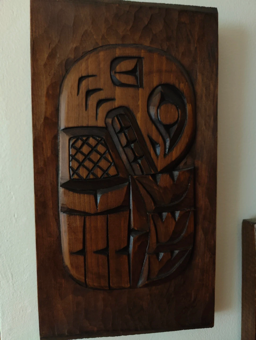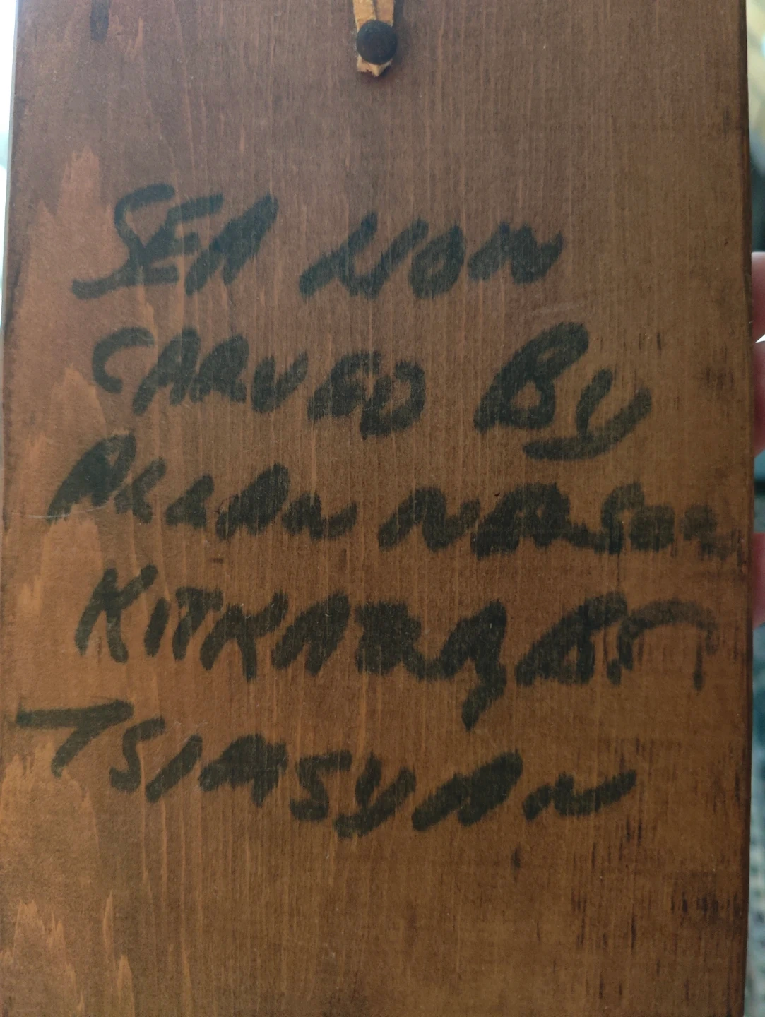 60Hand carved wooden art piece featuring a Sea Lion design. It's a unique piece of art, signed by the artist.
