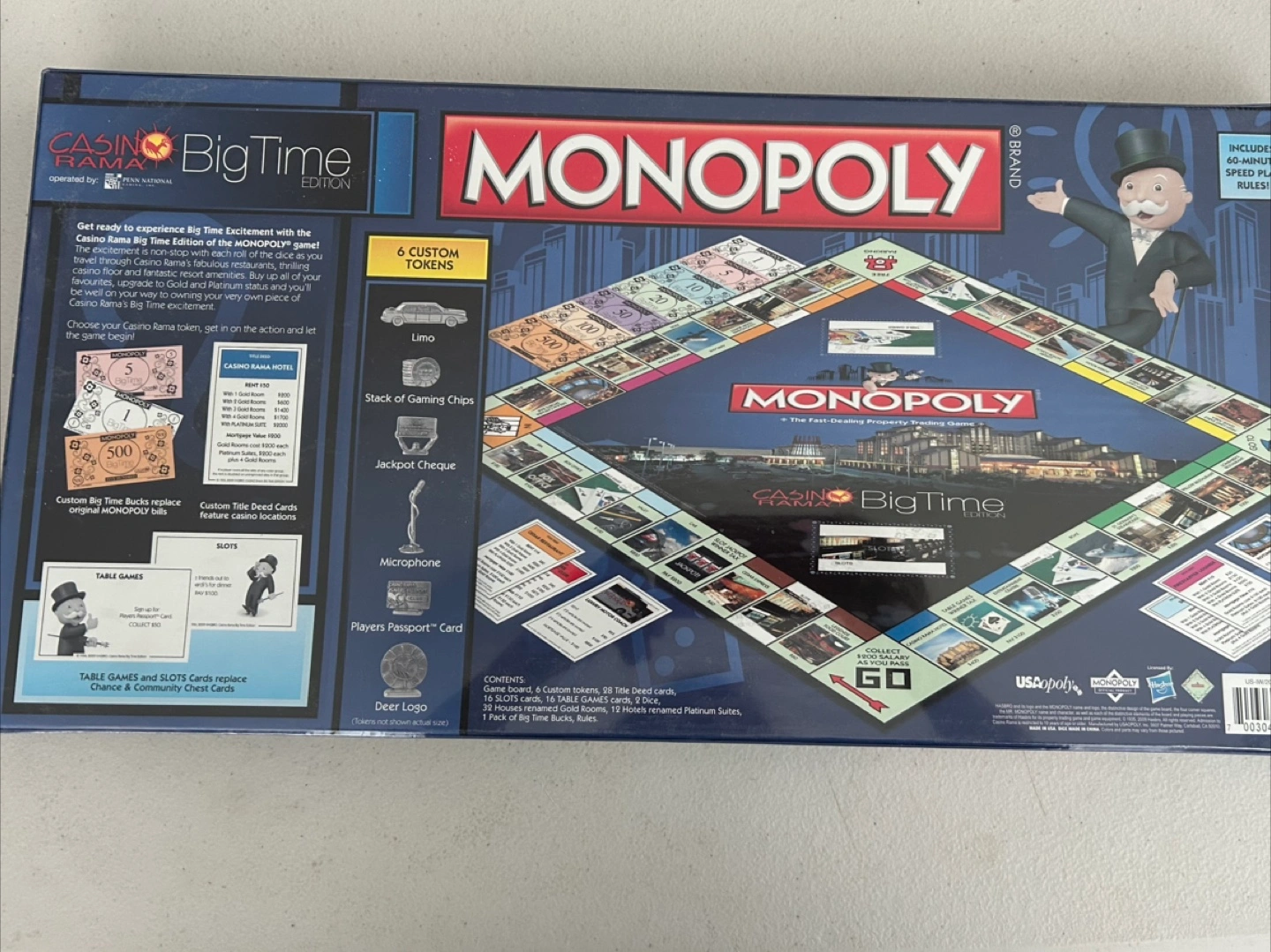 12Get ready to roll the dice with this Monopoly Casino Rama Big Time Edition. EBay price 50 plus tax. For sale only $30