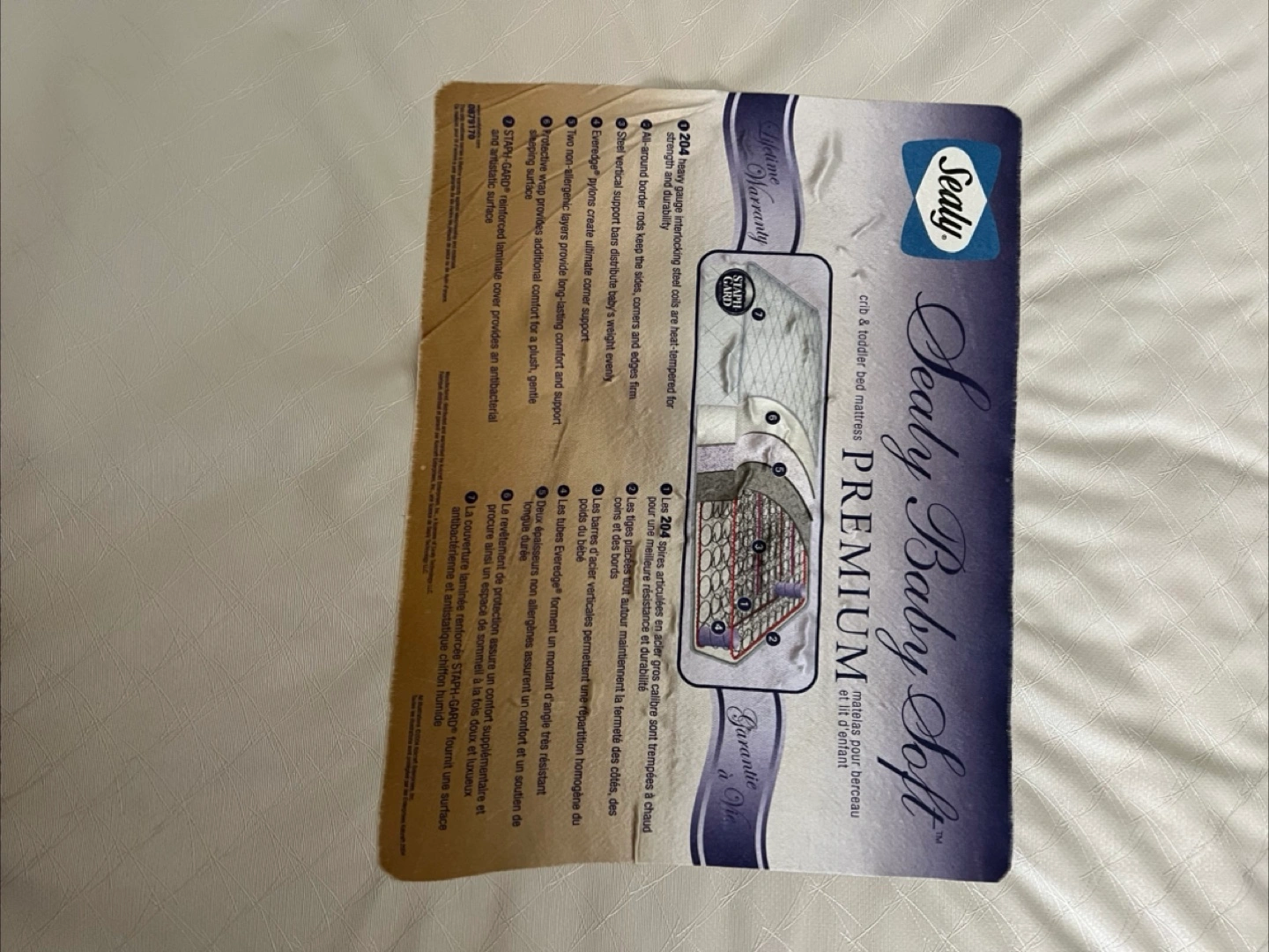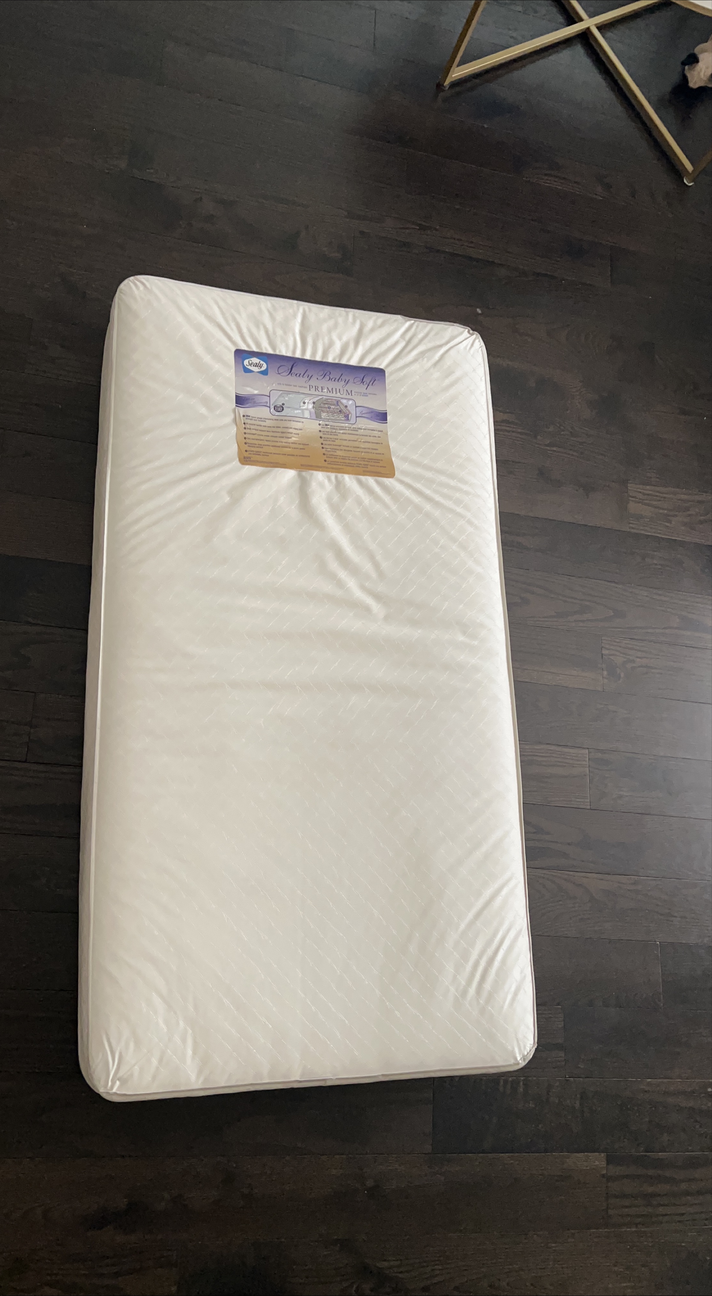 This is a almost new Sealy Baby Soft crib and toddler bed mattress! It's still in its original packaging. - Features 204 interwoven steel coils for durability and support - Has air around border coils to help with heat transfer