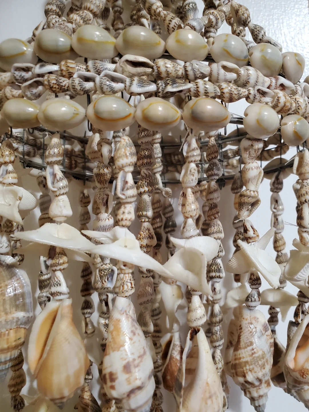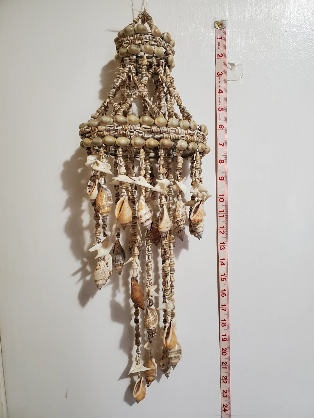 0Selling a unique seashell chandelier mobile. It's made with various types of seashells, creating a beachy, coastal vibe. It measures approximately 24 inches in length. It would be a great addition to any room!