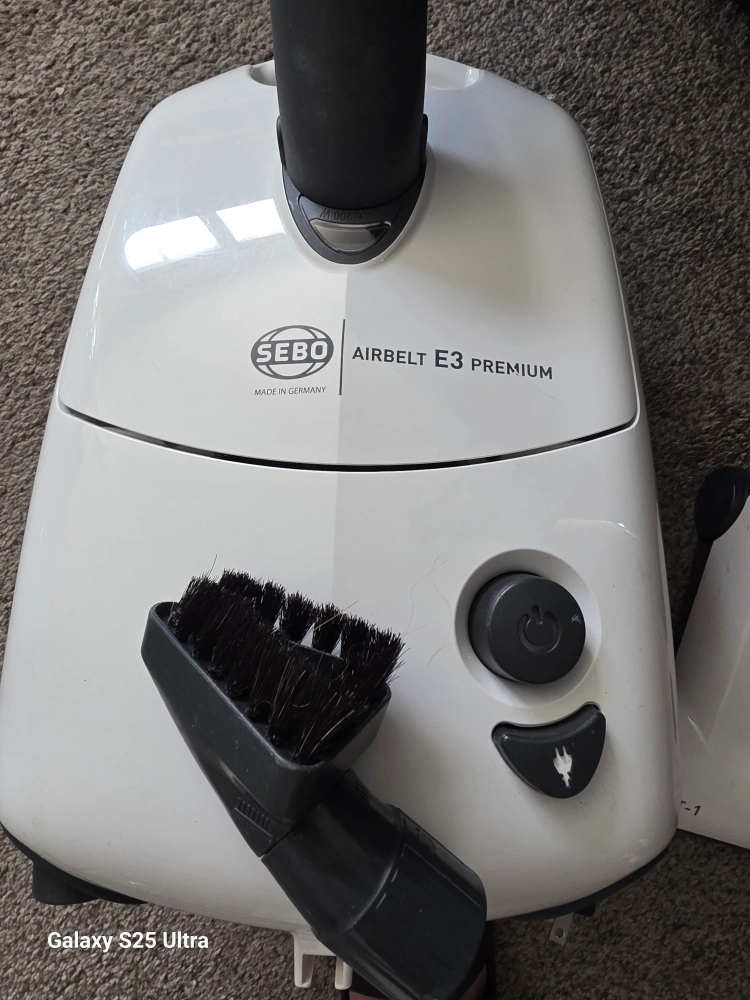 Selling a Sebo Airbelt E3 Premium vacuum cleaner! It's in good working condition and ready to help keep your home clean. It has some signs of wear, but it still works great. Perfect for any home!