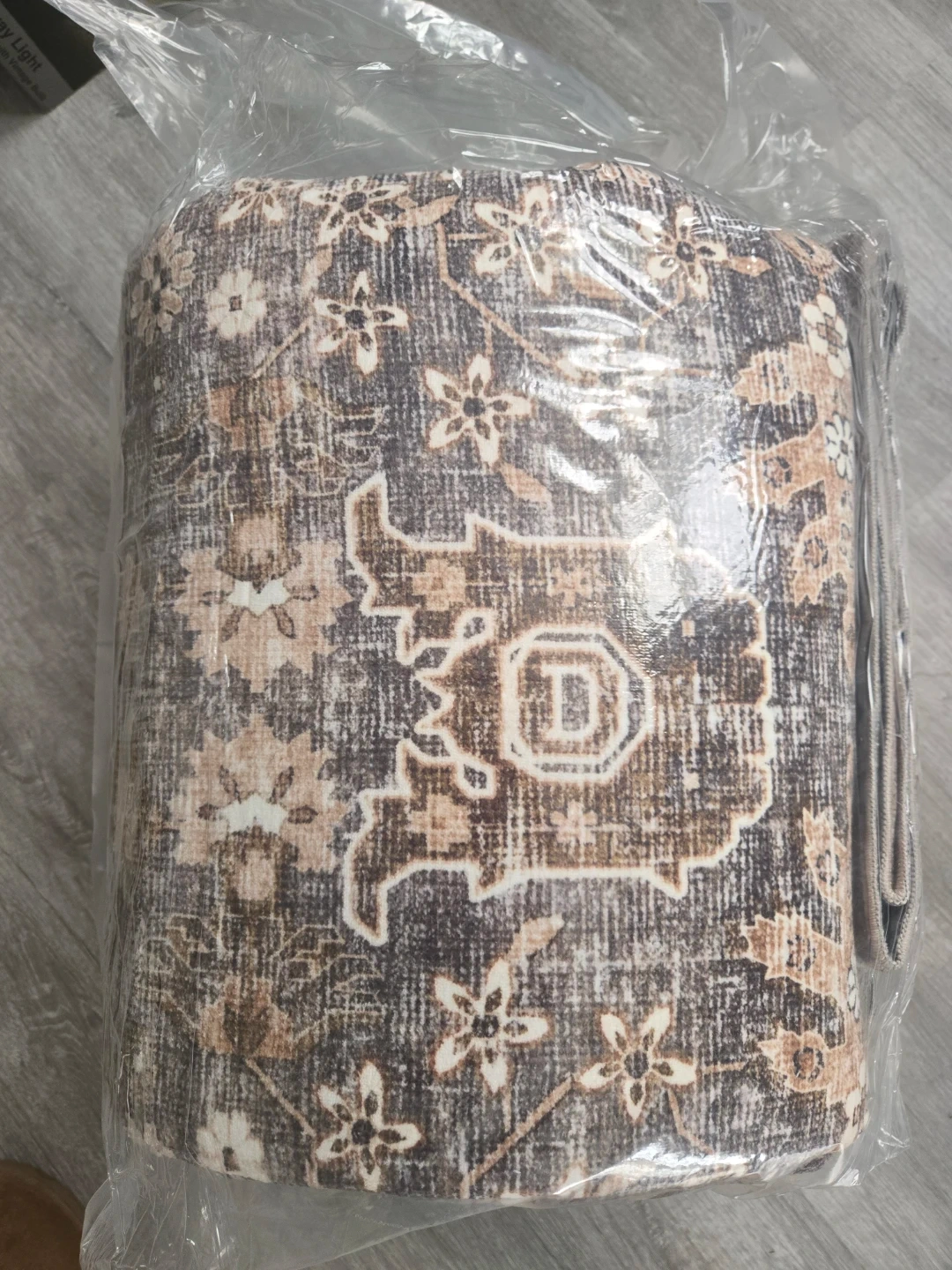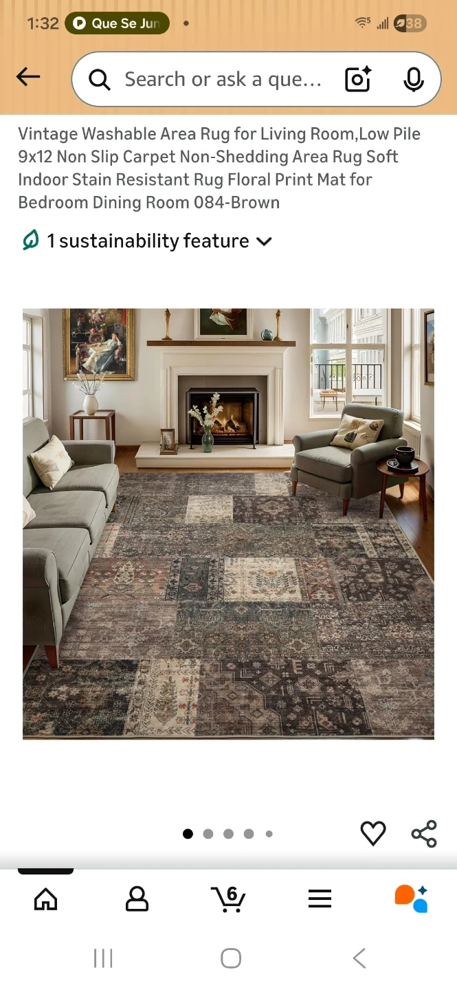 This is a 9x12 washable area rug. It's designed for indoor use and is non-shedding. The rug features a low pile and a vintage print pattern in brown tones. It's a great addition for living rooms, dining rooms, or bedrooms!