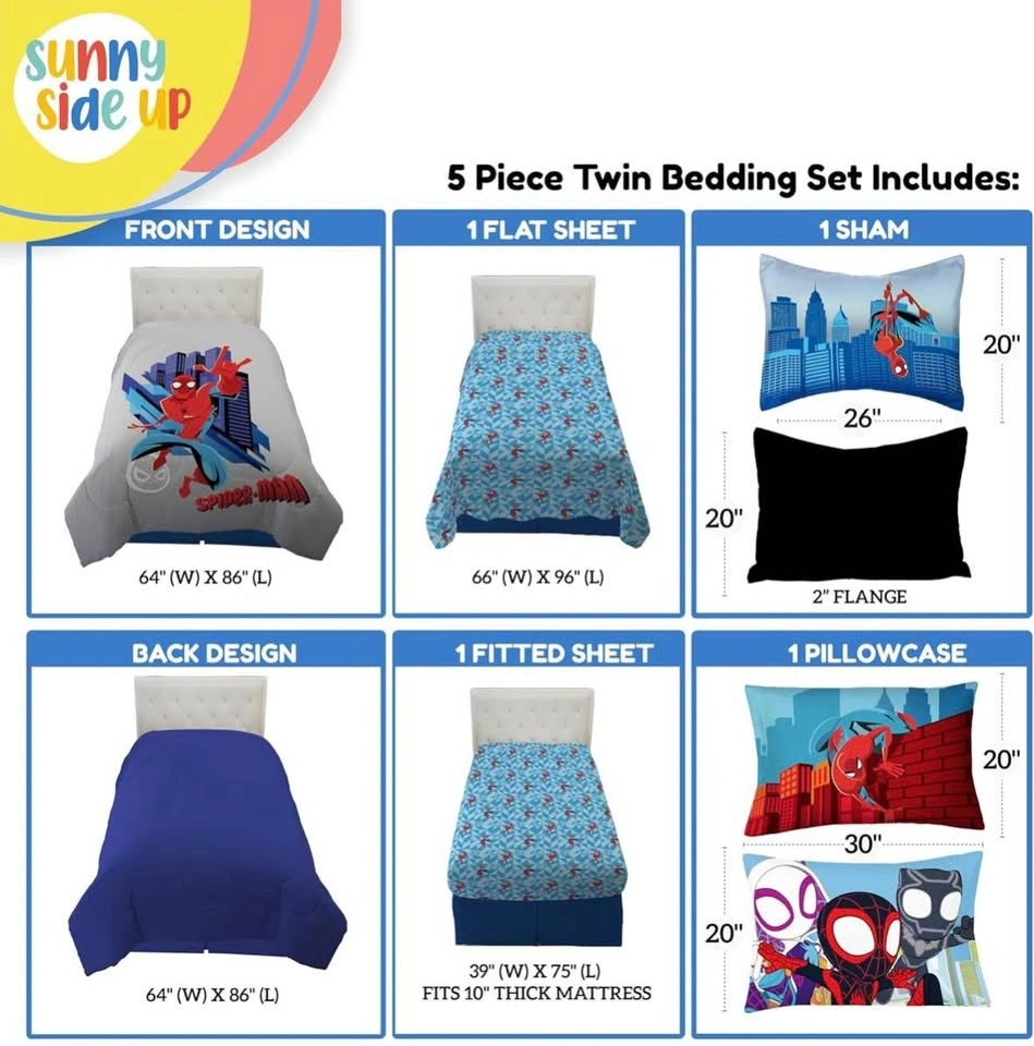 Spiderman New Comforter Set - 5 Piece Twin Bedding