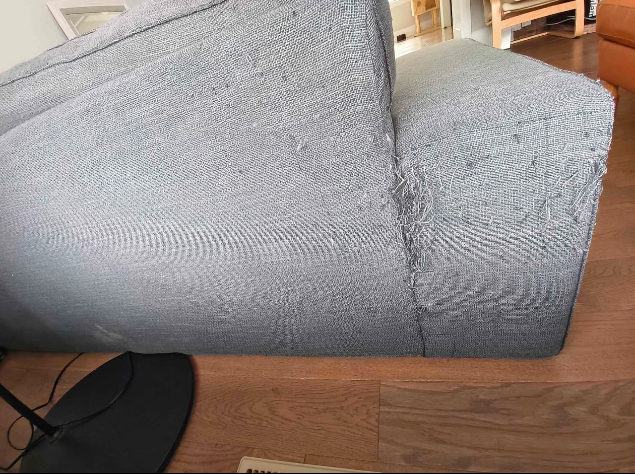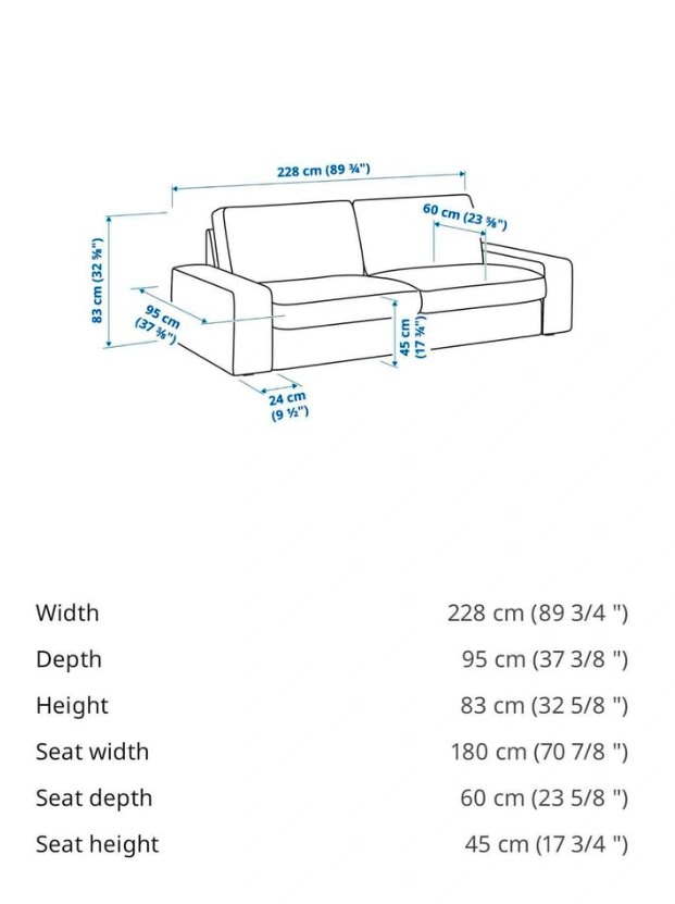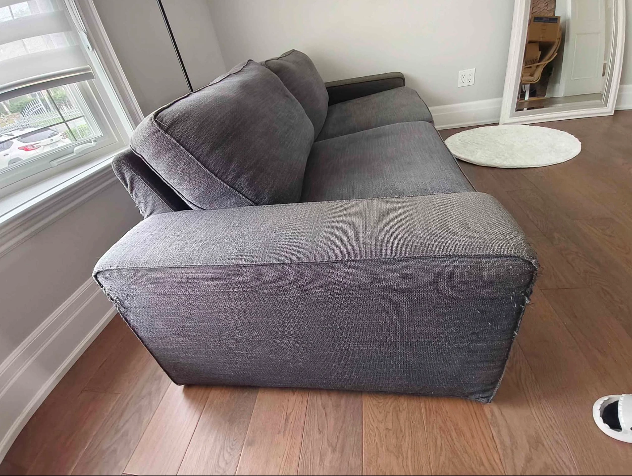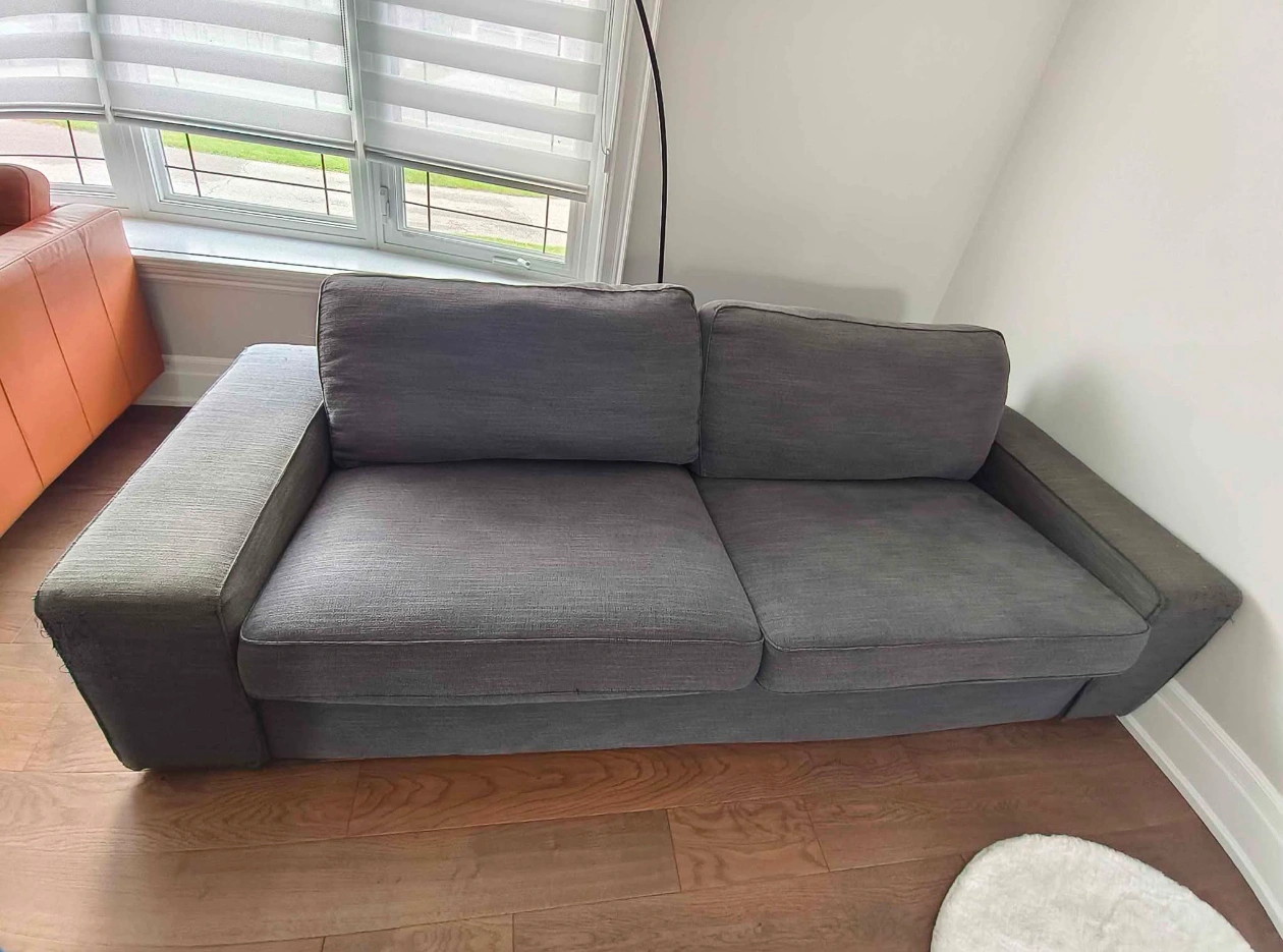 Ikea Kivik Grey. Brought at $699 now selling at $200 negotiable. From a non-smoking home. Overall in good condition, cleaned, no odor, no stains. Still got great support for both the seat and back cushions. Cover removable for deep cleaning. Lightweighted compare to old-fashioned sofas. Design and color suitable for modern and minimalism style homes. Measurements are shown in the picture. All the damages are shown in the last two pictures. Pick up only.