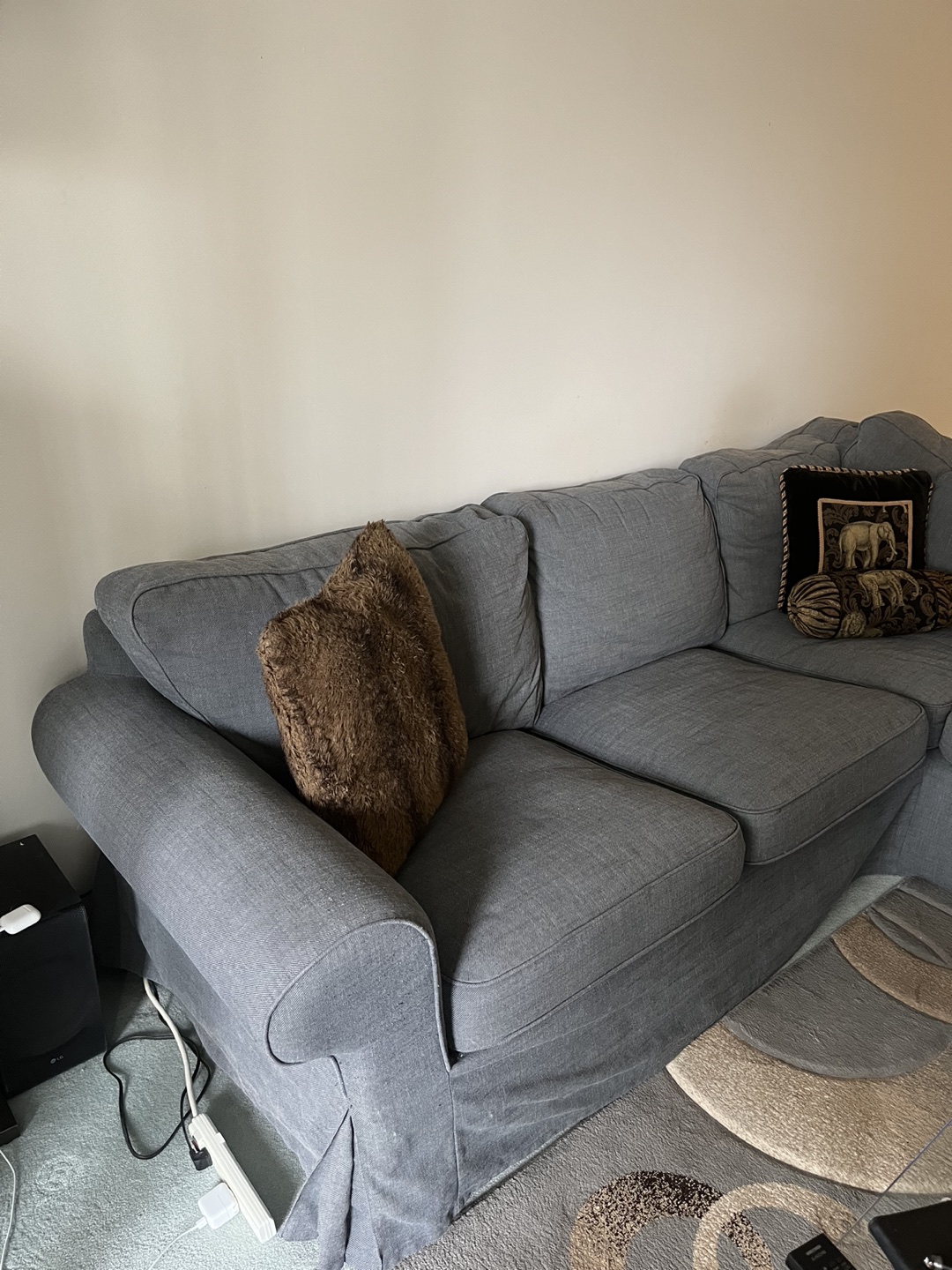 236know the feeling when you sit, lie down or hang out in a sofa, rather than on it. That’s how embracing the deep and generous this sofa is – your new favourite place for cozy evenings and lazy days! Purchased for over $1,500. Measurements Min. width: 95 5/8 " (243 cm) Max. width: 95 5/8 " (243 cm) Depth: 36 1/4 " (92 cm) Seat depth: 22 7/8 " (58 cm) Seat height: 18 1/2 " (47 cm) Height including back cushions: 36 1/4 " (92 cm) Width right: 99 1/4 " (252 cm) Seat width right: 51 5/8 " (131 cm) Seat width left: 51 5/8 " (131 cm) Width left: 99 1/4 " (252 cm) Height under furniture: 6 3/4 " (17 cm) Armrest width: 9 7/8 " (25 cm) Armrest height: 26 3/4 " (68 cm)