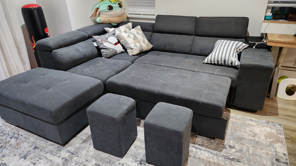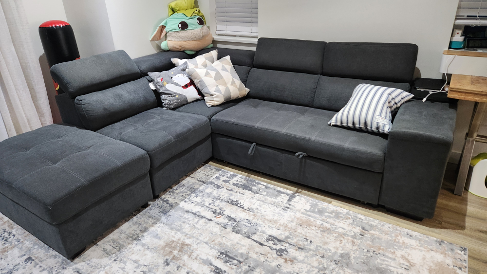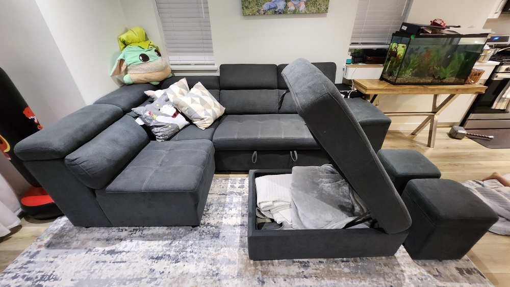10Moving out. Need this sofa to be picked up by the end of this month or even earlier because moving out. Bought it over $3000 , my loss your gain! Sectional Sofa Bed with adjustable head rest in great condition, comes with storage ottoman and 2 benches . Color is dark Grey. Pets and smoke free home. Dm offers. Need to be gone asap.