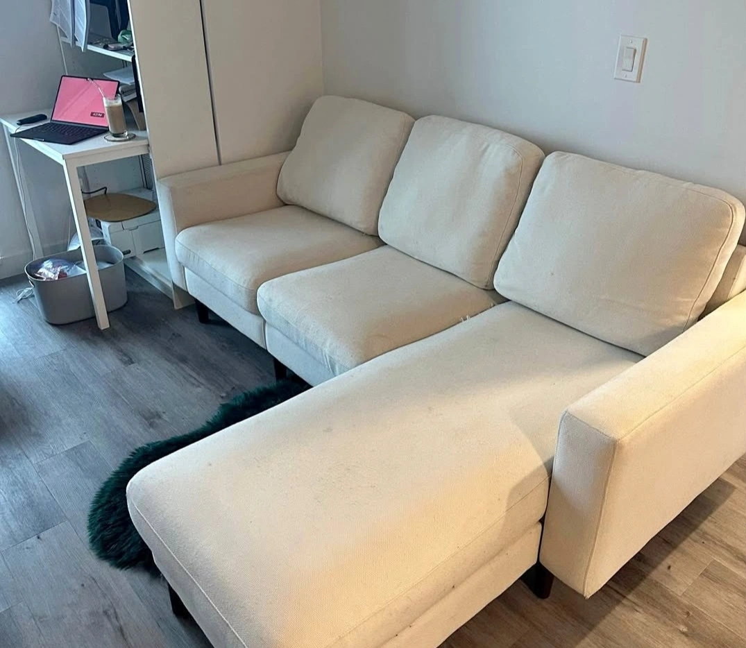 Selling a sectional sofa in a neutral beige colour! It's in great condition and would be perfect for a living room or den. This comfy couch is ready for a new home