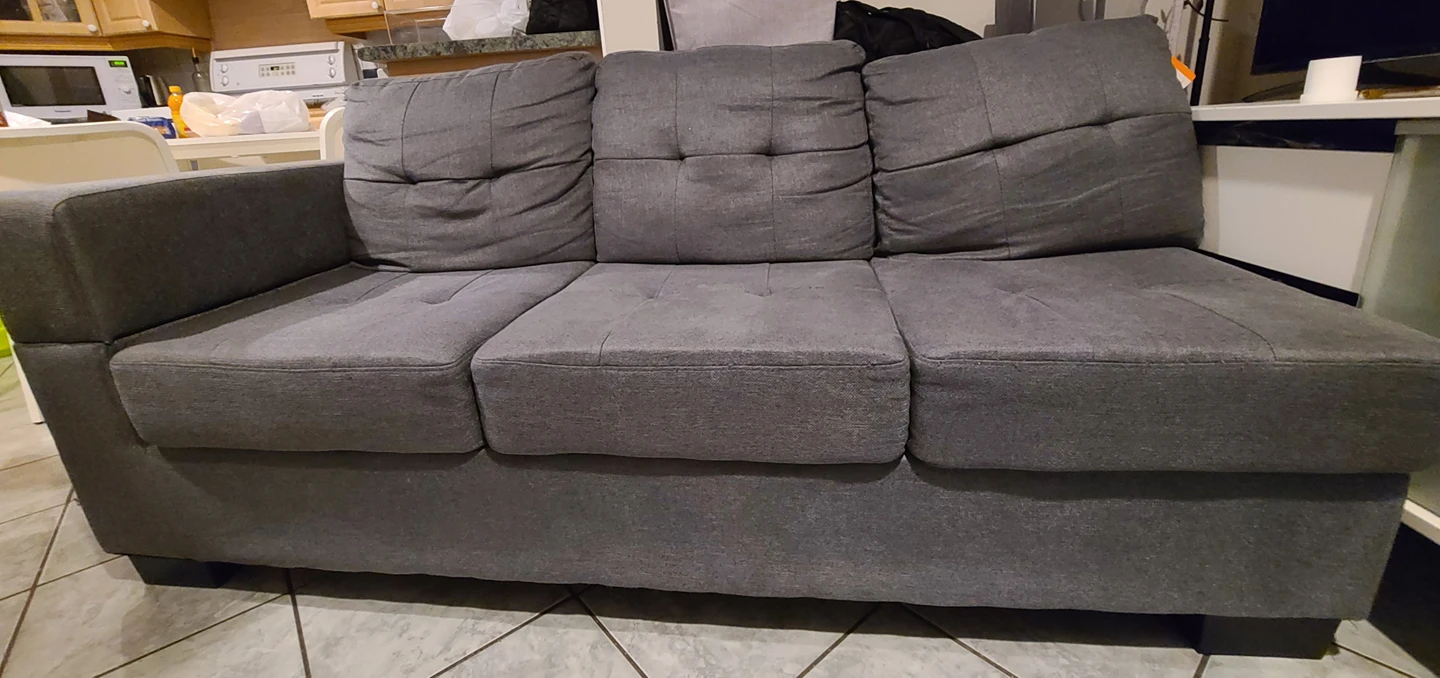 Casual looking Sectional Grey Sofa. Suitable option for a small living room as it provides more seating within the limited space. Perfect conditions. Love seat: width 1,78 x length 0,76 Chaise: width 1,45 x length 0,76