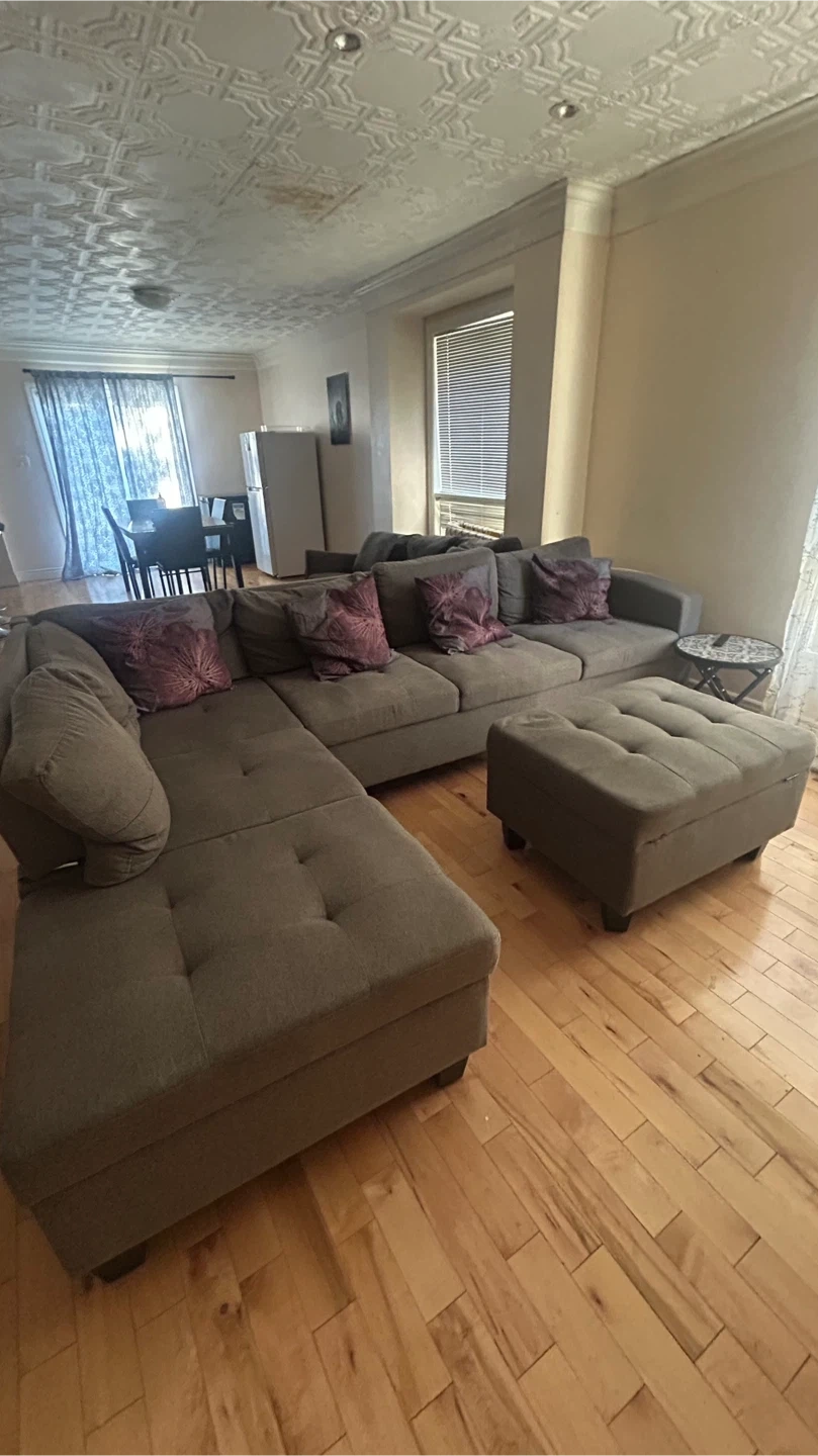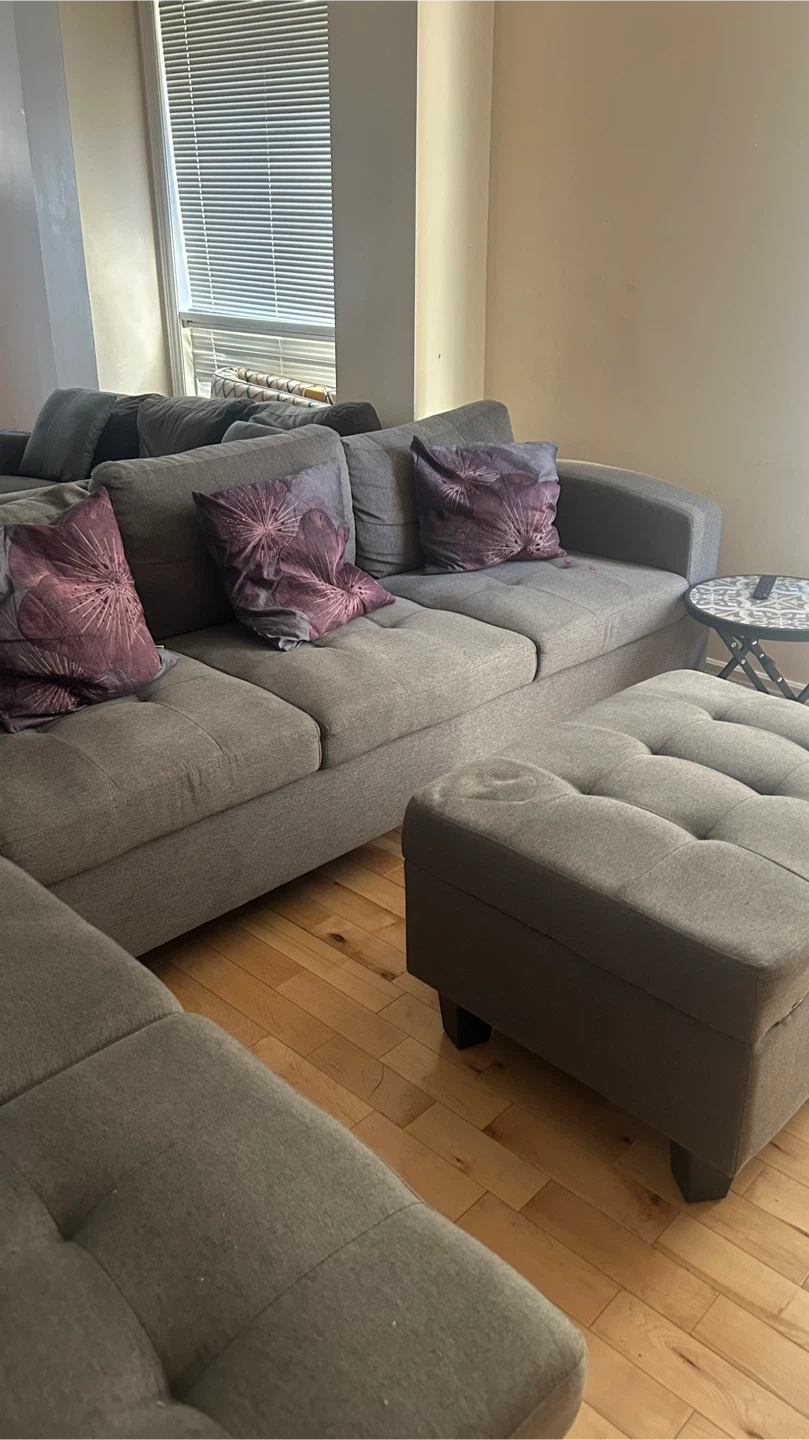 15Selling a comfy sectional sofa with a matching ottoman. It's in great shape and perfect for a living room or family room. The cushions are soft and supportive, making it a great place to relax. The ottoman provides extra seating or a place to kick your feet up. It's a neutral colour that would fit in with any decor