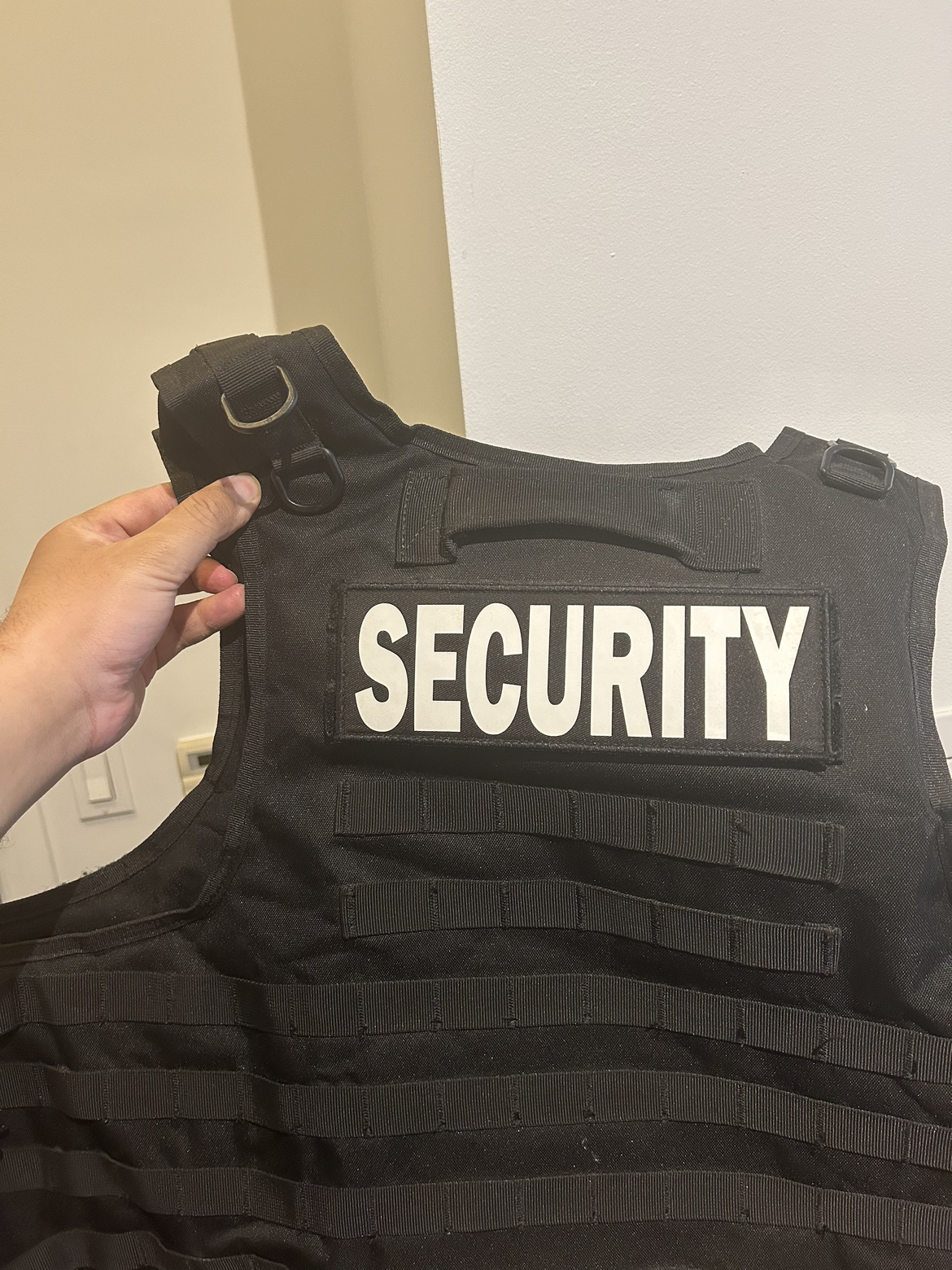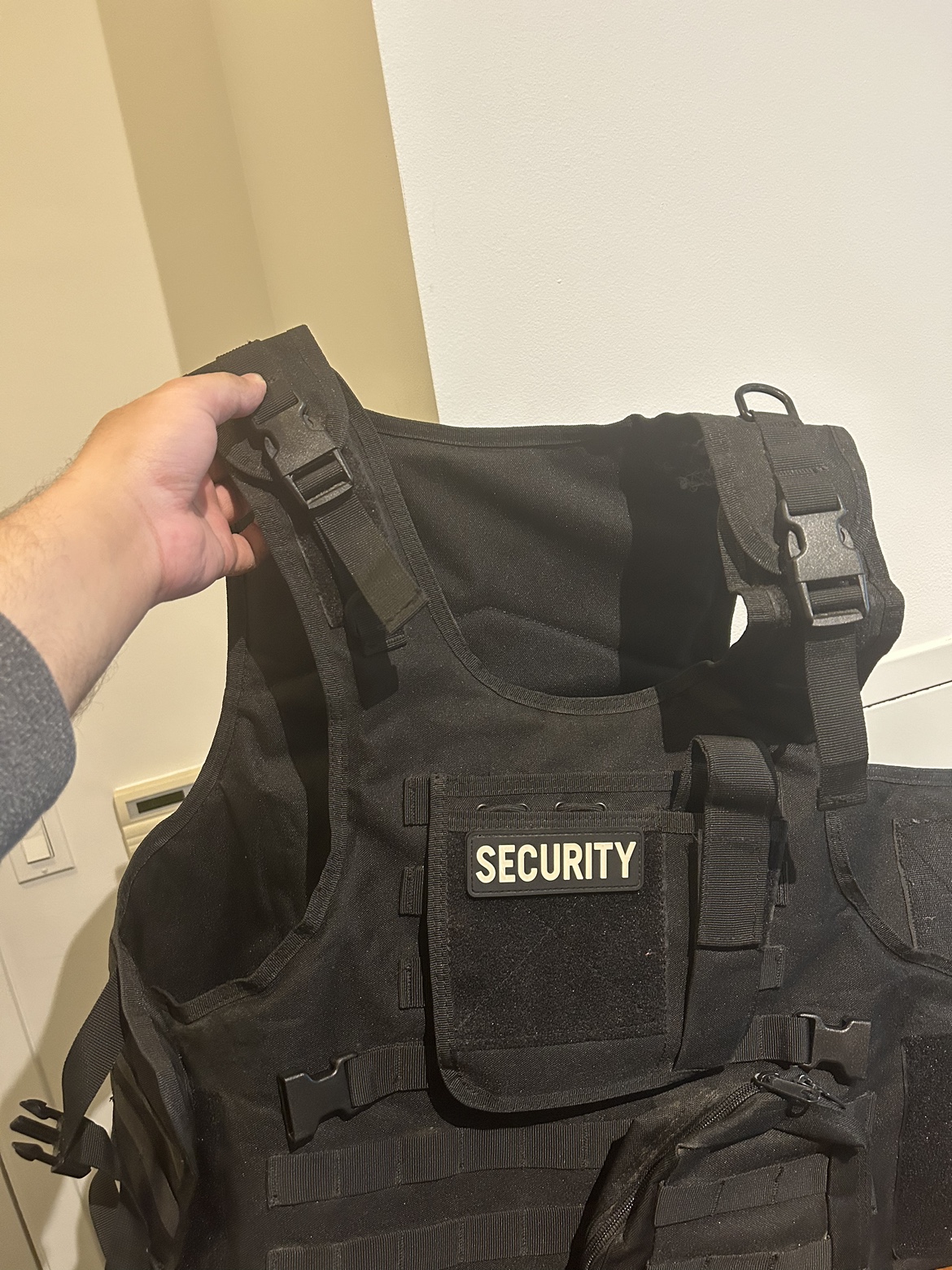 17Black colour tactical security vest price would be negotiable. Call 4379862550 for any other inquirey