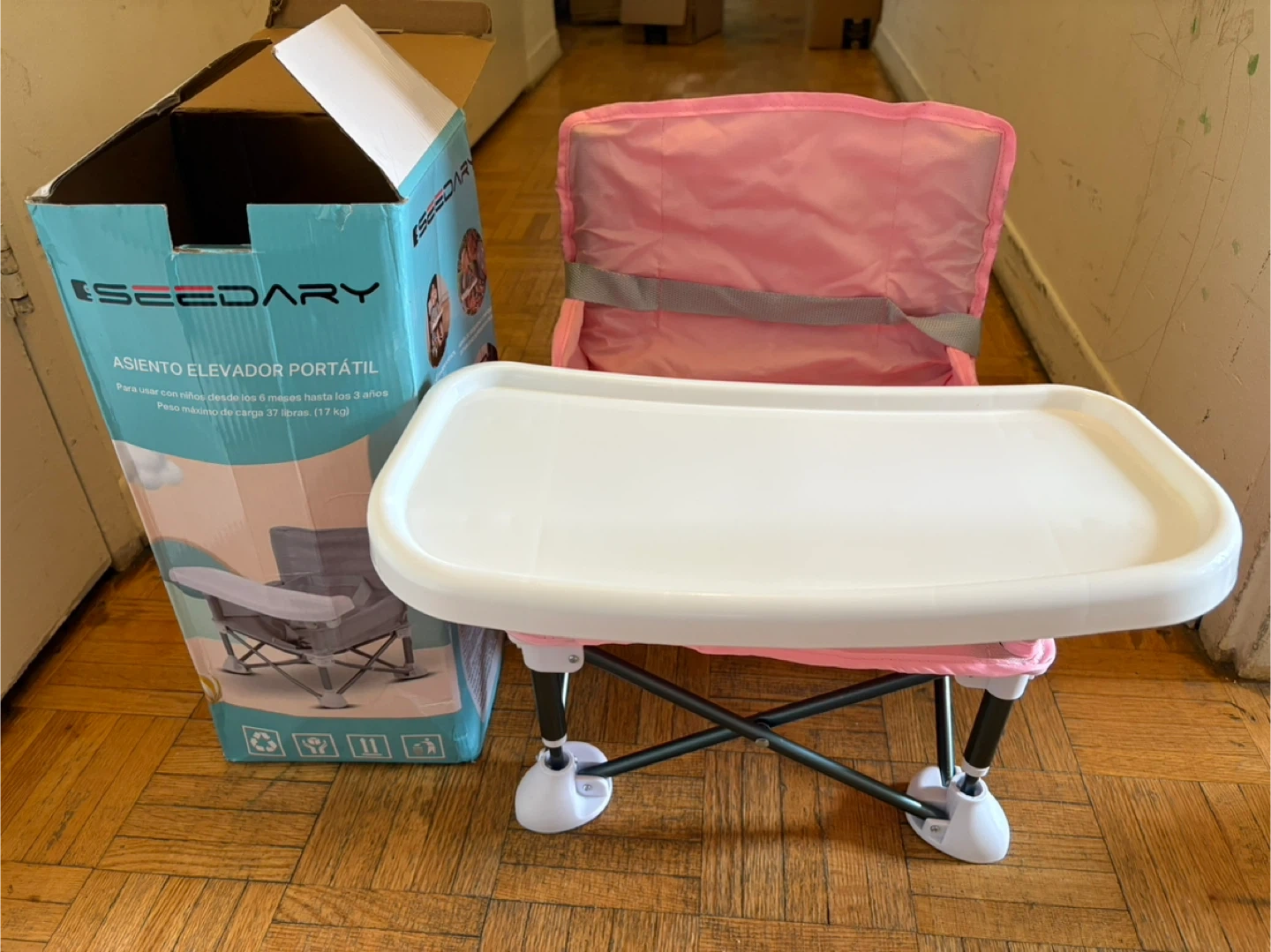 10Selling a Seedary portable booster seat in pink! It's perfect for kids who can sit unassisted (around 6 months) up to 3 years old. The maximum weight capacity is 37 lbs (17 kg). It comes with its original box