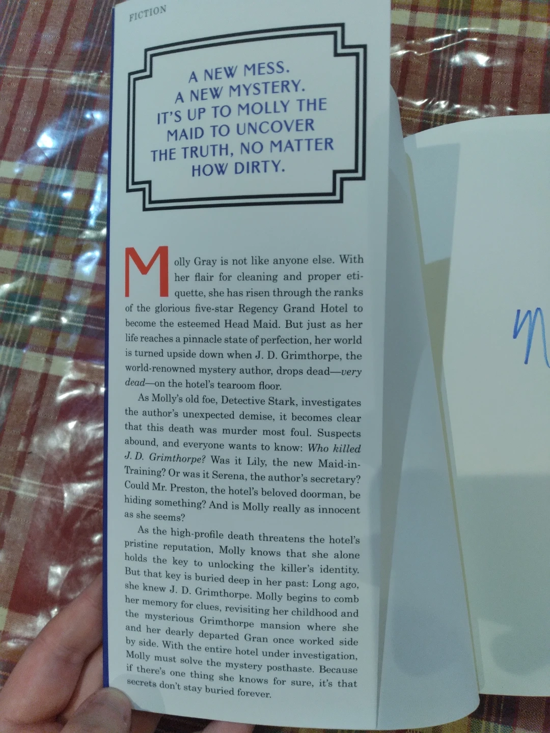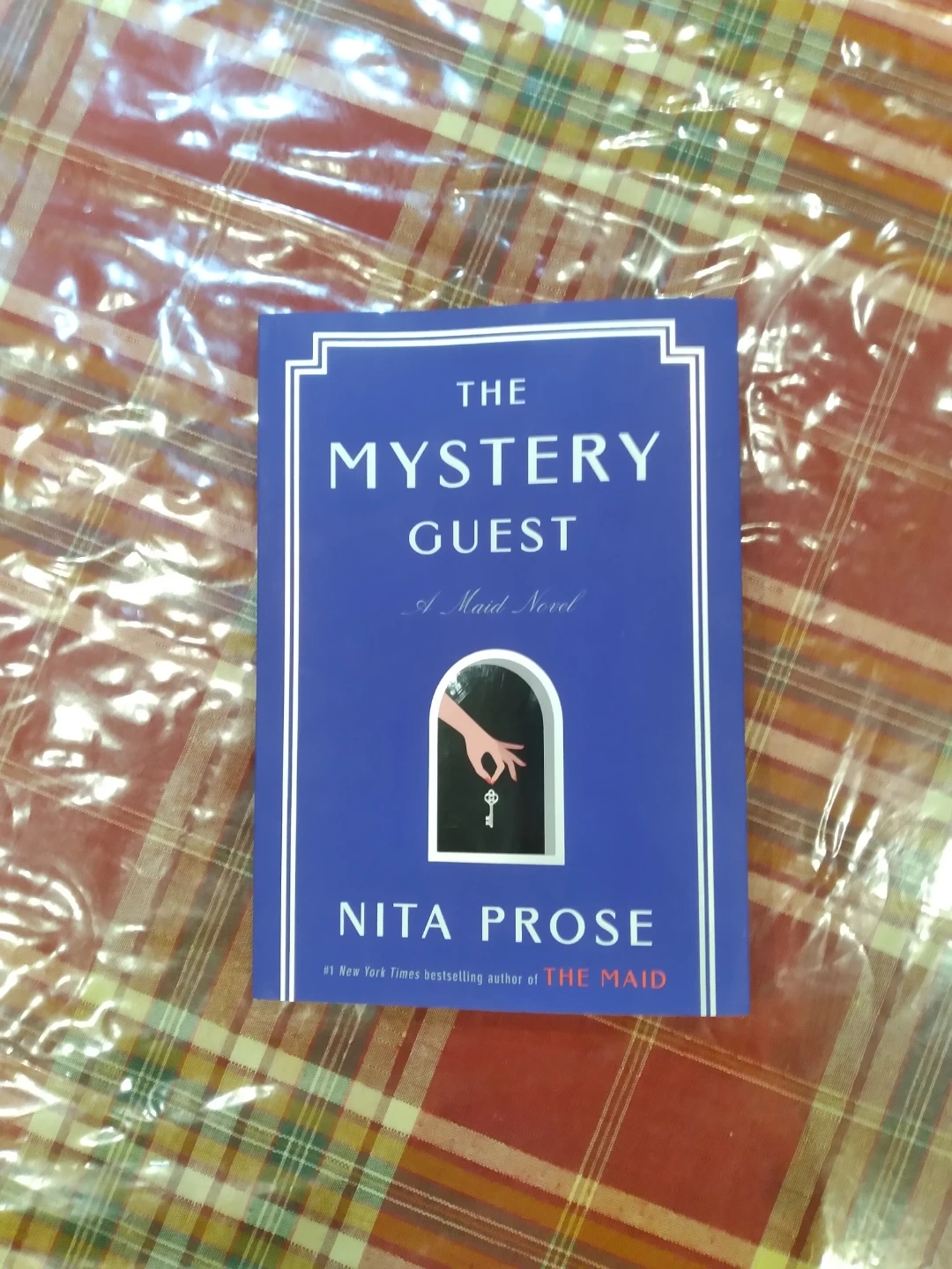 This is "The Mystery Guest A Maid Novel" by Nita Prose. It's a mystery fiction book. The author's signature is present inside the cover.