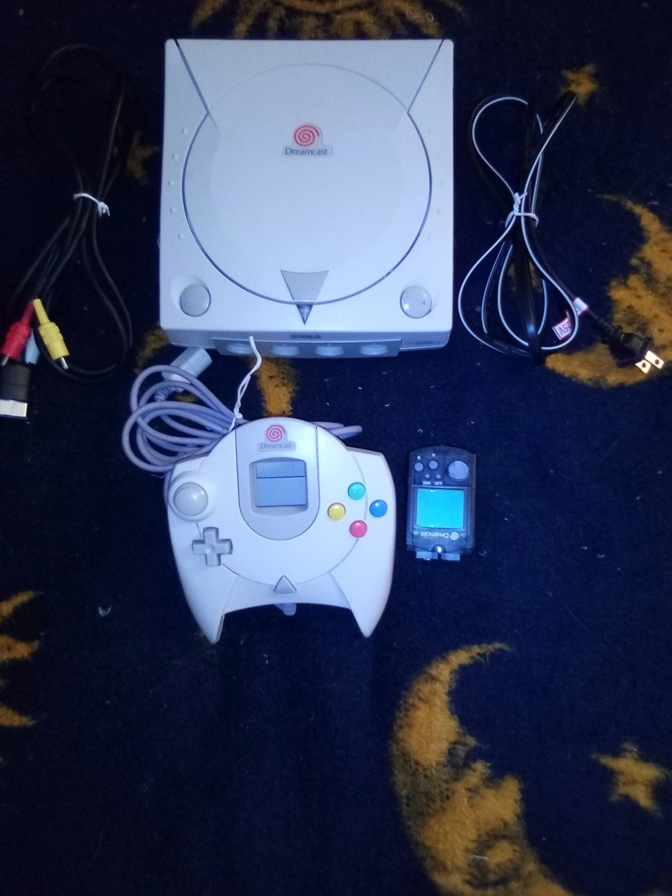 Selling a Sega Dreamcast console. Includes the controller and a Visual Memory Unit (VMU). Great for retro gaming!