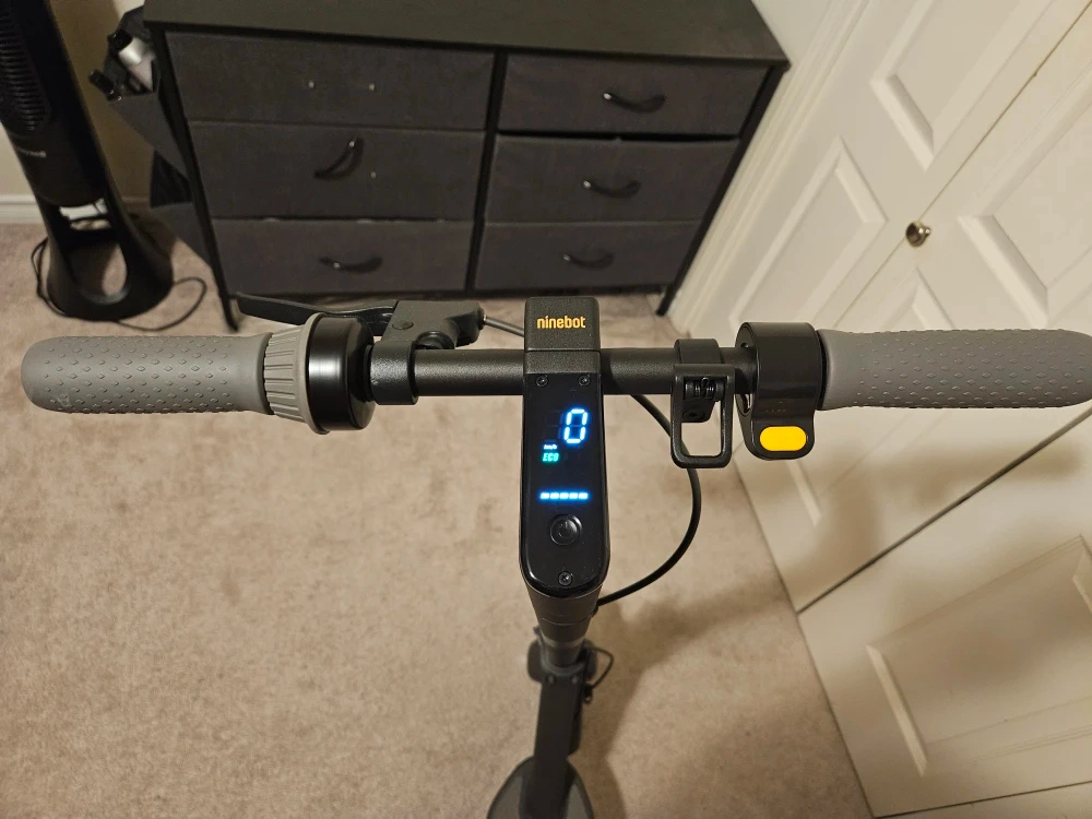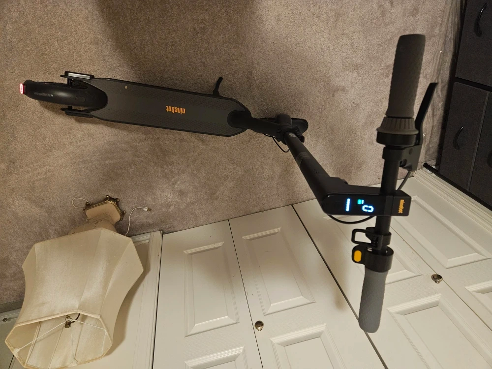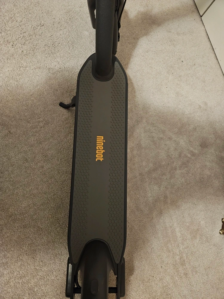 Brand new Segway Ninebot max g30p electric scooter with a digital display, a rear brake, and a black frame with orange accents. No scratches or damage. It is in great condition and has been used for only 2.8 km.