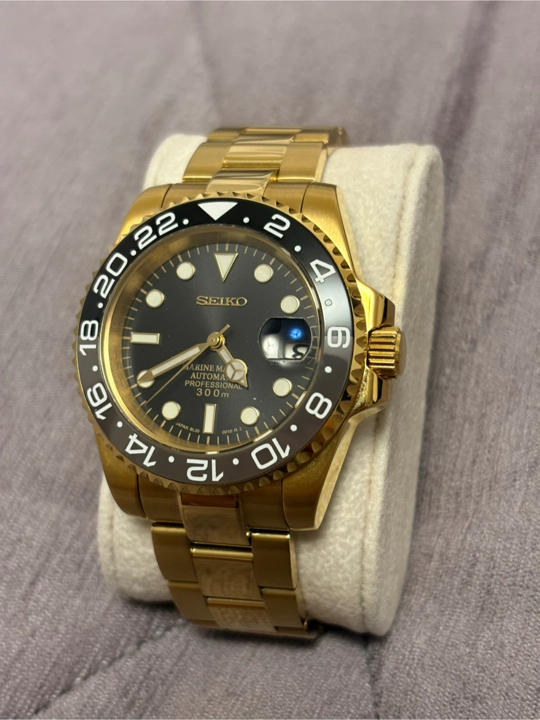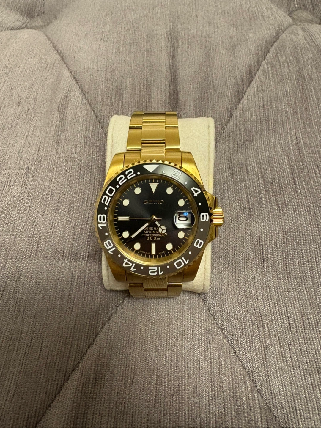 Selling a Seiko Bruce Wayne GMT master II mod. In gold. Seiko NH34 movement Automatic