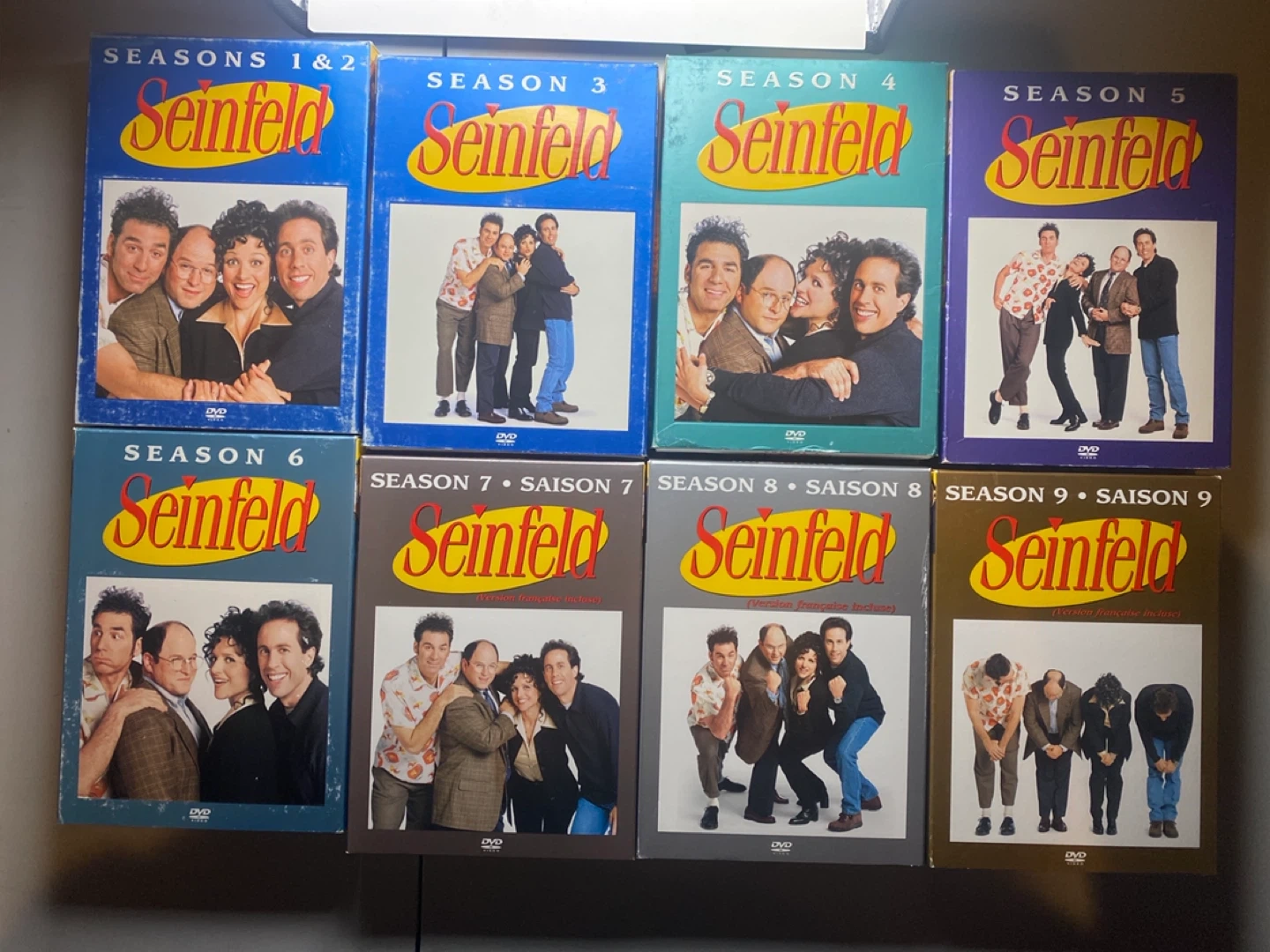 65Selling the complete Seinfeld series on DVD, including seasons 1 through 9! A must-have for any fan of the show, this set includes all the classic episodes and special features Some marks on outer cases as shown on pictures provides, DVDs are in great condition!!!