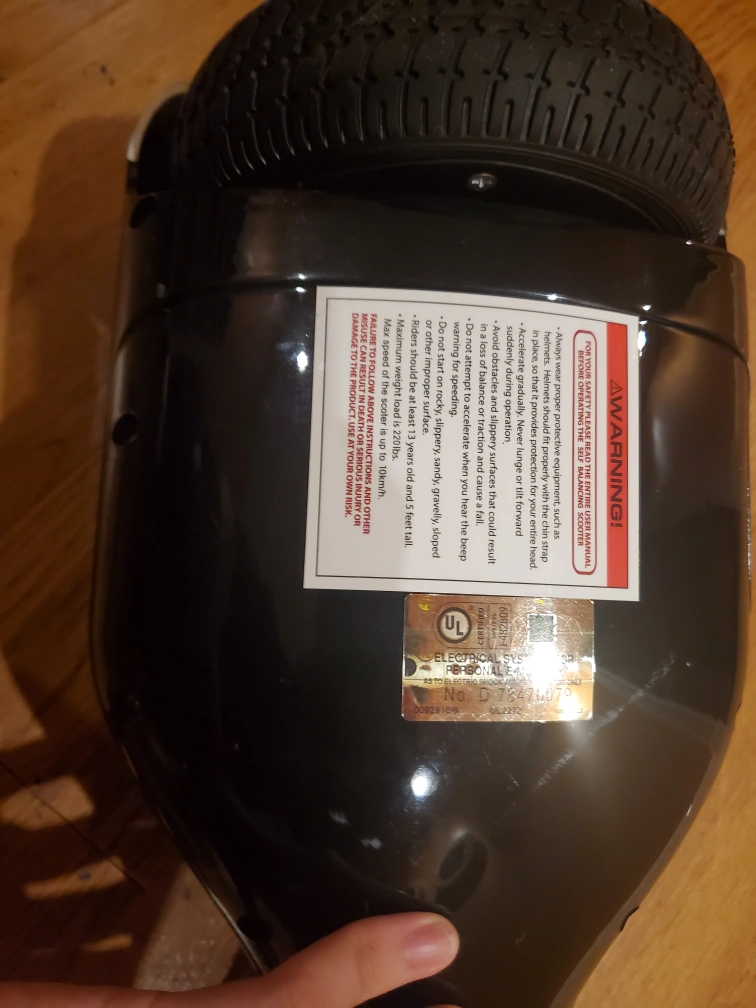 Selling a used self-balancing scooter. It has a maximum weight capacity of 220lbs and a maximum speed of 10km/h.