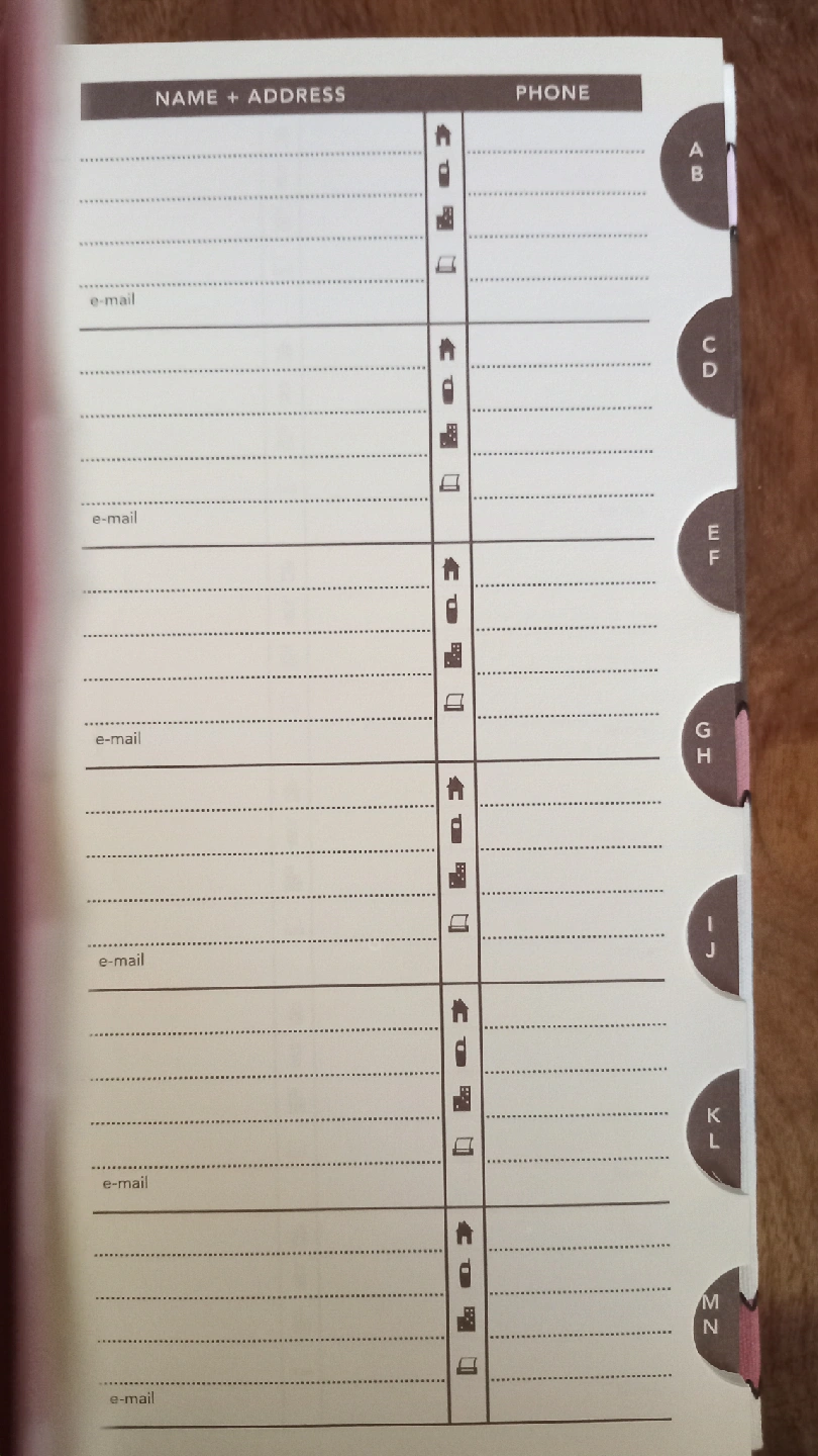 35Address book with alphabetical tabs for easy organization