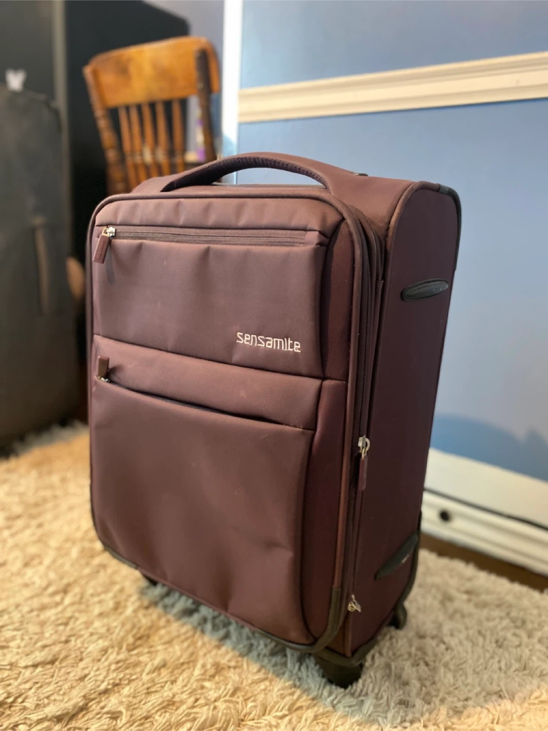 I'm selling a Sensamite carry-on suitcase. It's in great condition and ready for your next trip! It's a nice burgundy color.