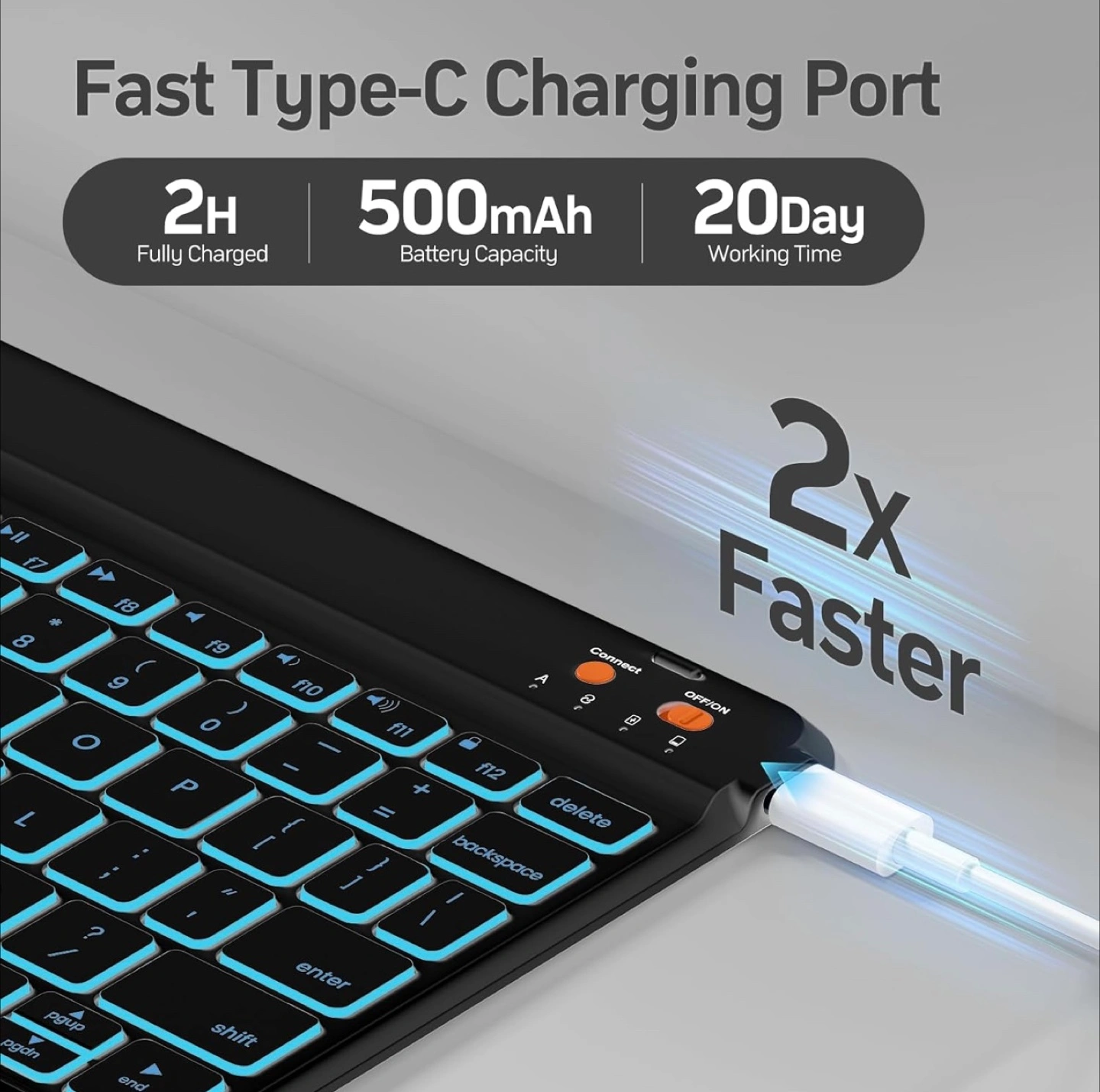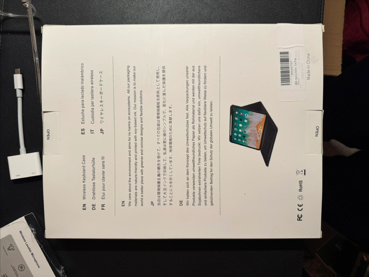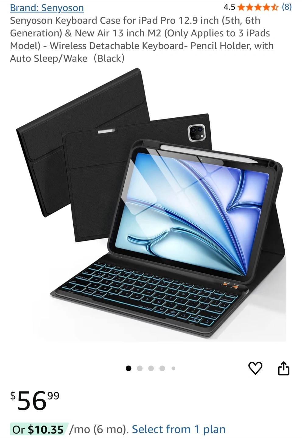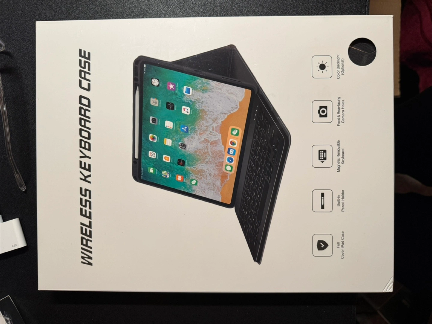 267Black detachable keyboard case. Compatible with iPad Pro 12.9-inch (5th, 6th Generation) and new iPad Air 13-inch (M2). Features a built-in pencil holder, auto sleep/wake function, and a fast Type-C charging port. Includes a full cover case.