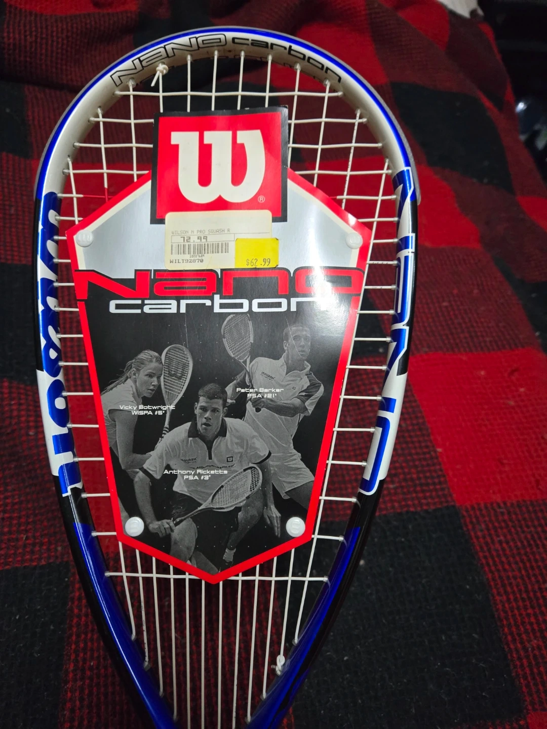 This is a Wilson Nano Carbon tennis racquet. It's constructed with carbon for durability and lightness. Perfect for beginner to intermediate players looking to improve their game.