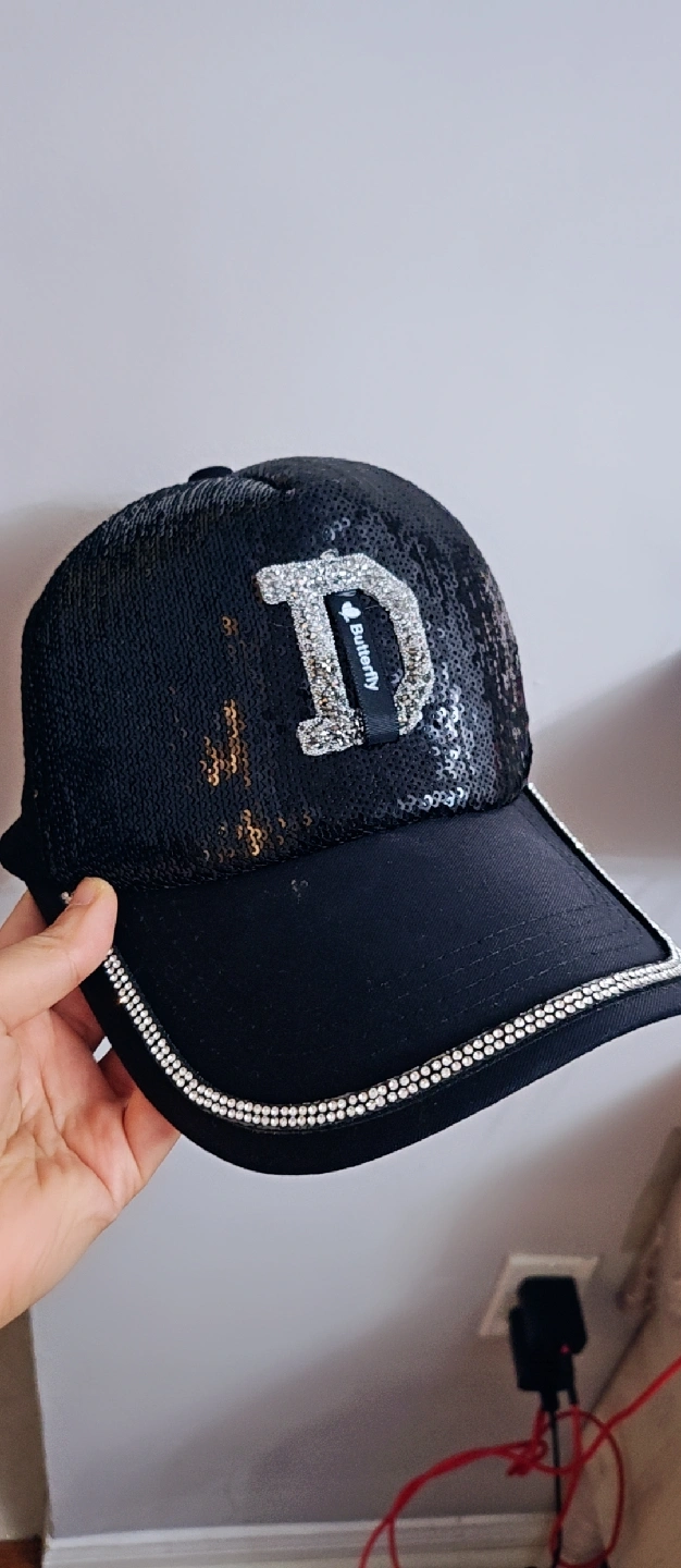 1000+🖤Check out this stylish black baseball cap! It features sequins on the top and a sparkly 'D' with a cute butterfly detail. The brim also has a line of rhinestones for extra bling. Perfect for adding some sparkle to your outfit!🖤