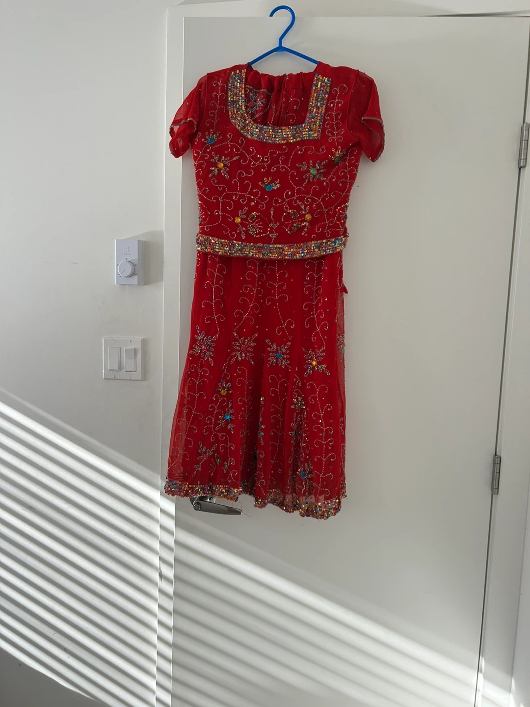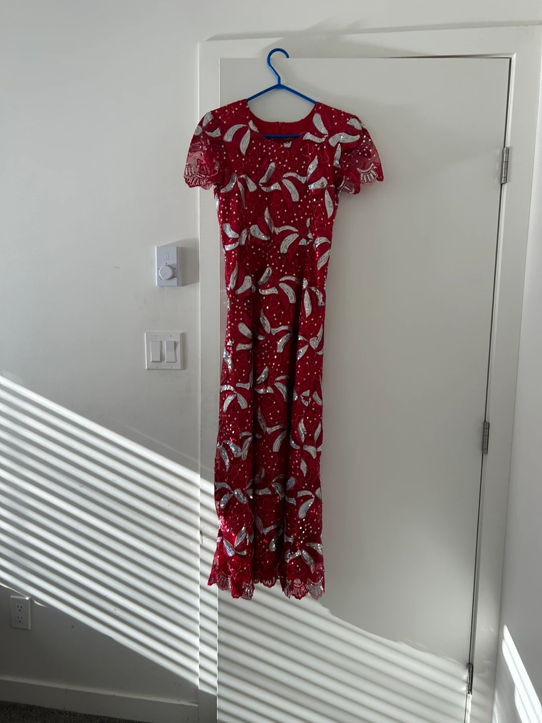 Selling a beautiful dress with sequin embellishments! It's in great condition and perfect for a party or special occasion. The dress features intricate detailing and a flattering silhouette. It would look great for a night out!