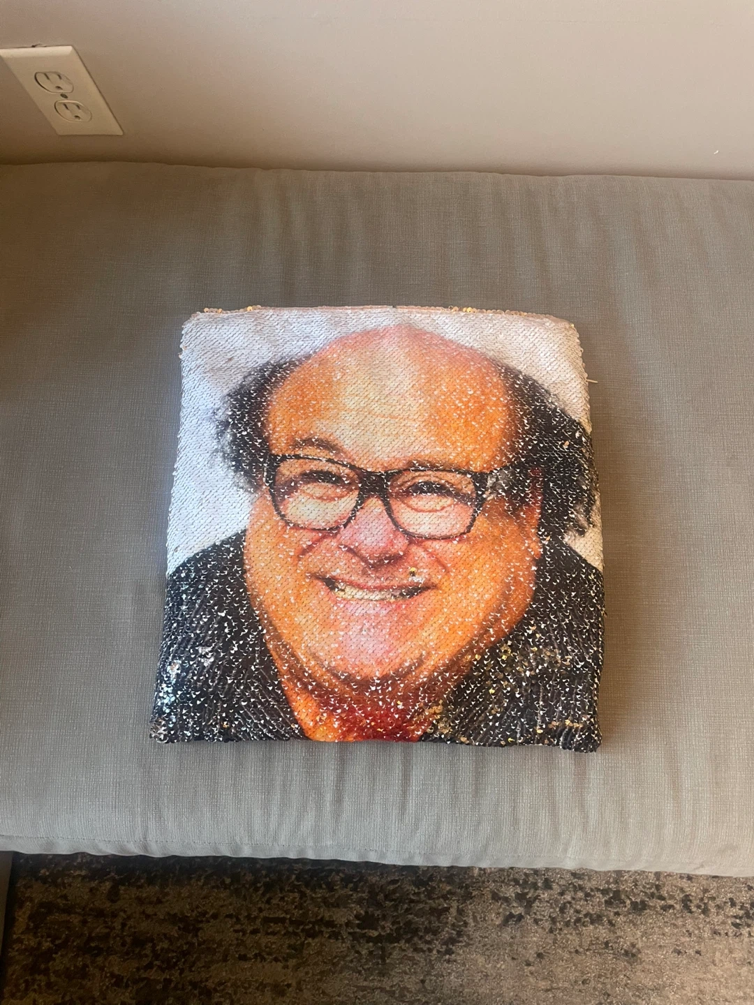 60This is a fun sequin pillow that reveals a picture of Danny DeVito when you brush the sequins in the opposite direction! It's a unique and quirky addition to any room.