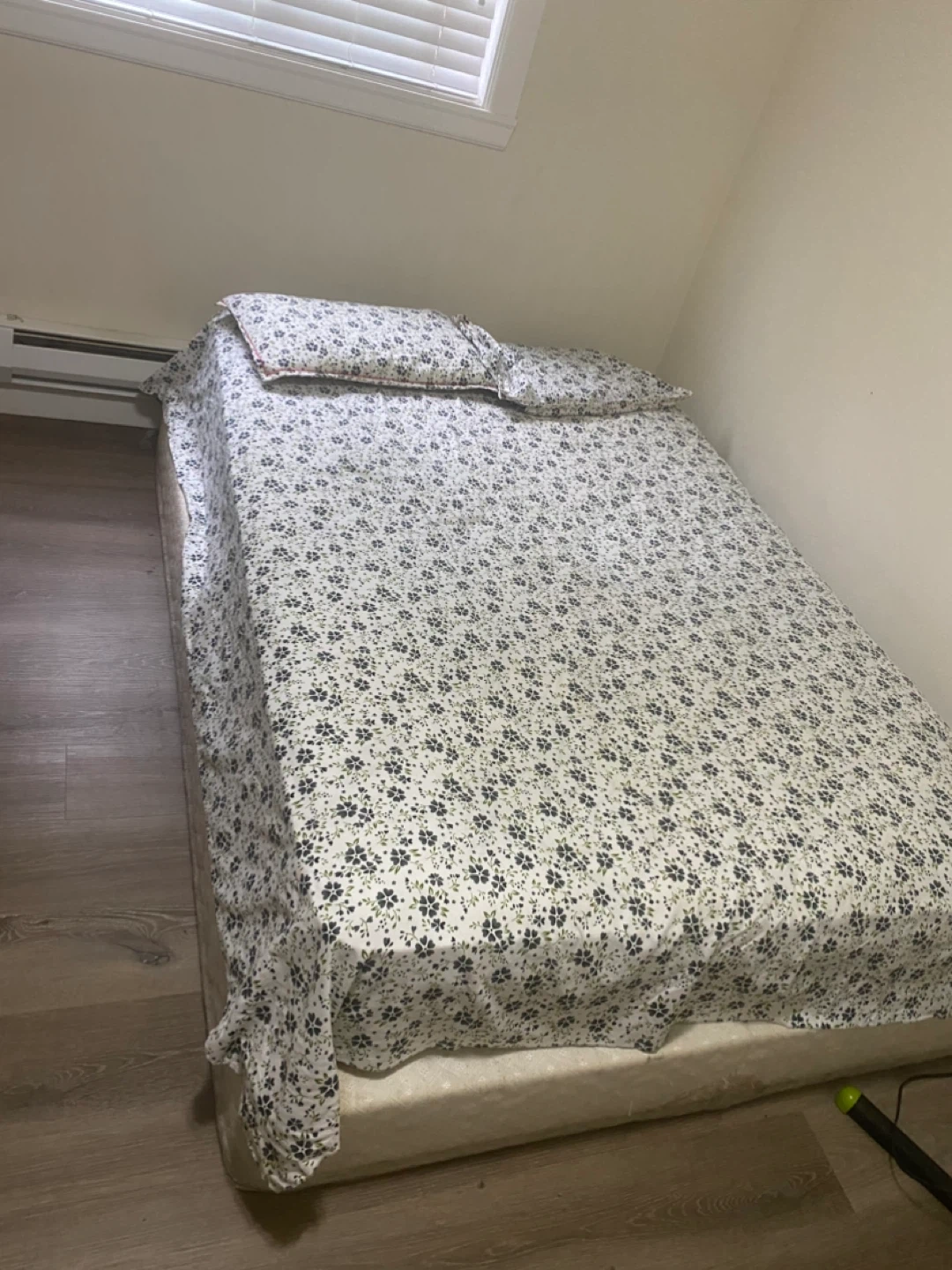 Metal frame with moveable wheels and Box Spring