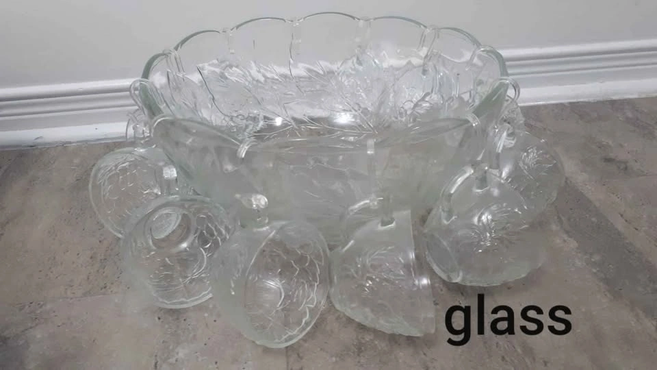 All for $15. Glass vintage fruit punch bowl set. (Missing the plastic ladle and 1 cup.) Parfait or jello cups and small tupperware like containers. Located in the hunt club park area near Conroy and Johnston road
