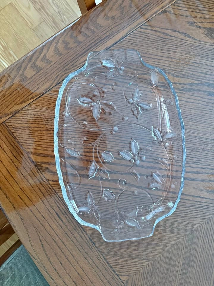 New glass serving dish. Stunning engravings.