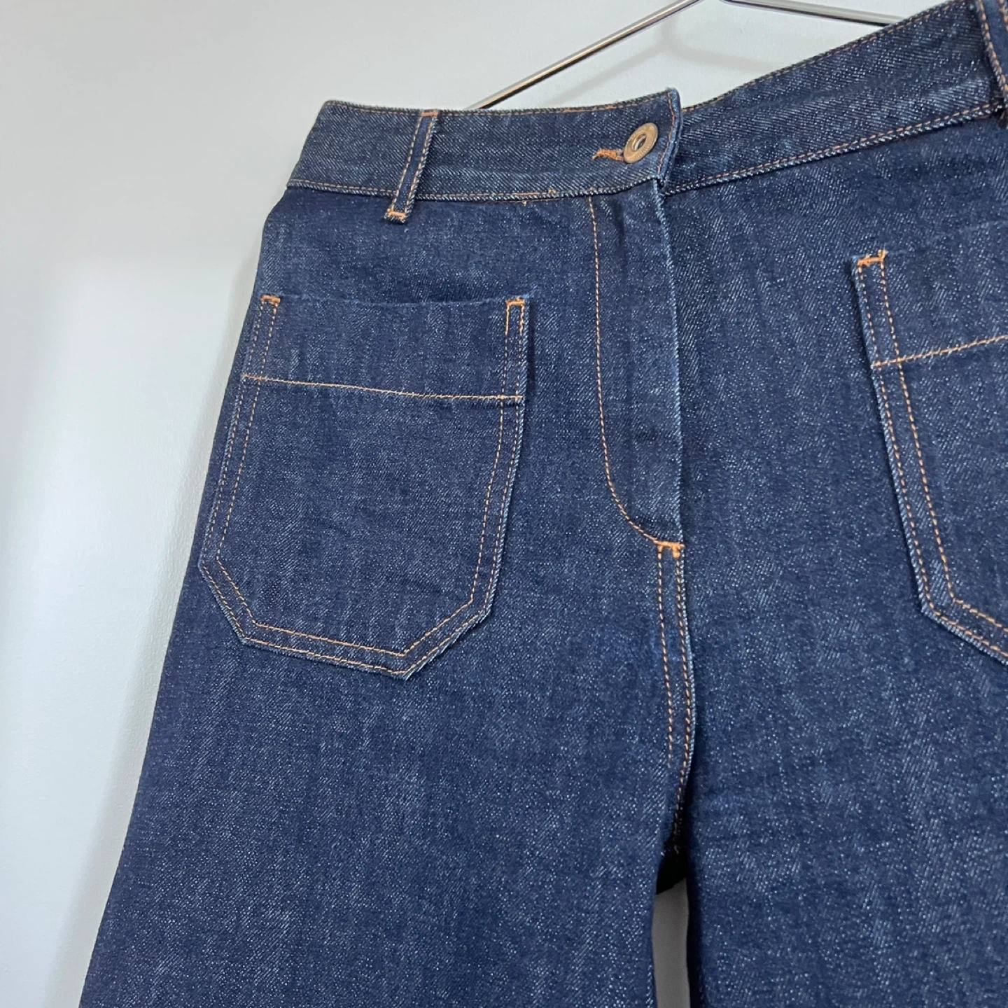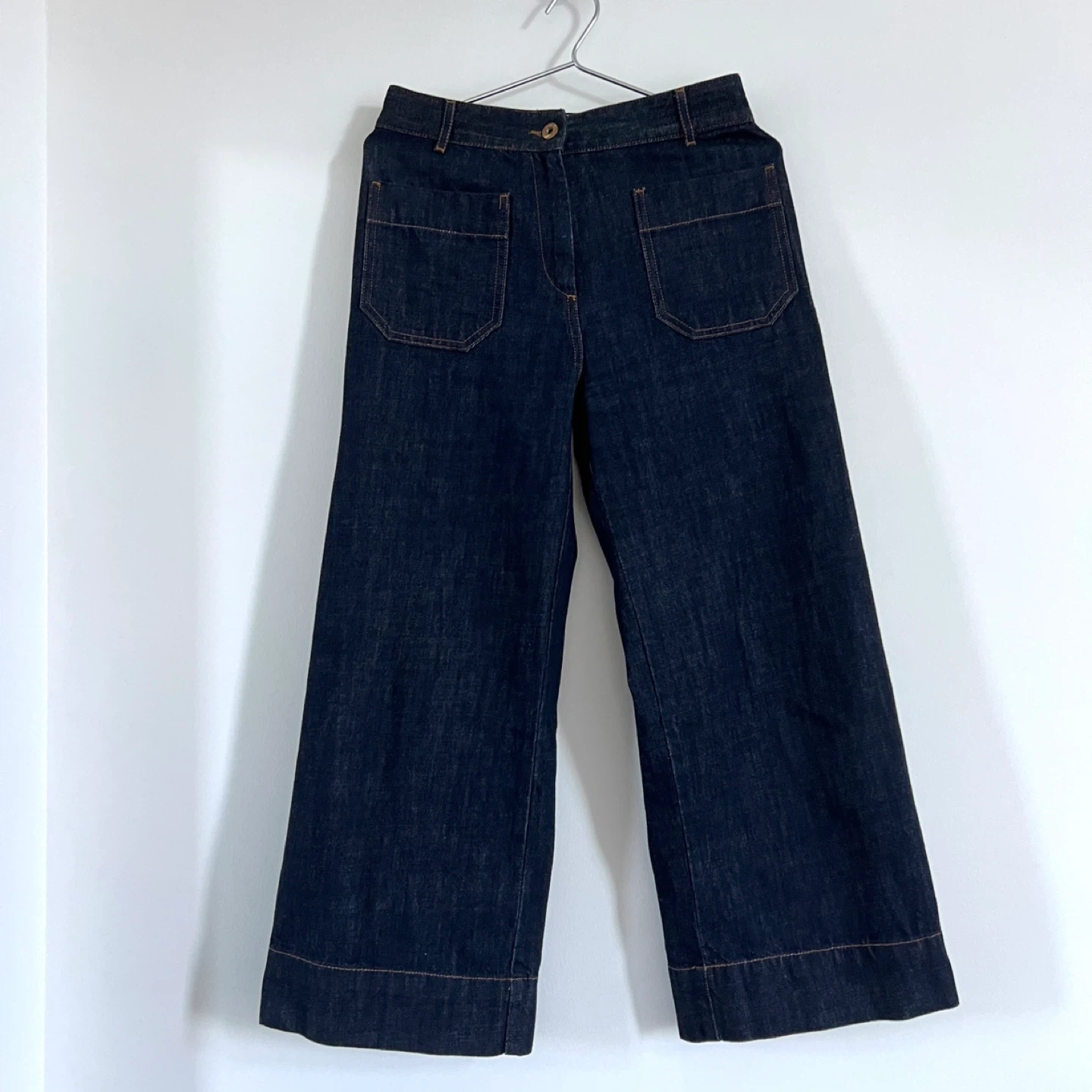 39A-line sailor-style 7/8-length jeans in a single-wash denim fabric. Size 38 (Medium) In mint condition, worn once. Currently being sold on their website for 145 € https://en.sessun.com/catalogue/denim/seakey-o-rince.html This garment is made from fabric containing indigo-dyed threads. This specific method reveals the unique details of each material, creating variations in color and irregularities, making each piece unique. Indigo thread, due to its natural dye, is prone to fading during washing, and even when worn. Remember to wash these items inside-out and separately. By following the washing instructions and care recommendations, you will be able to enjoy your garment for a very long time. Wear it and love it! Ganni APC Sezane Staud Cecilie Bahnsen Simone Rocha Paloma Wool Sandy Liang Reformation Rouje Sandro Maryam Nassir Zadeh Isabel Marant Everlane Madewell Bode Studio Nicholson Toteme The Row Gimaguas Glossier Ciao Lucia Doen Sea New York Djerf Avenue Deiji Studios Rachel Comey Acne Studios Simon Miller The Frankie Shop One of a Few SSENSE