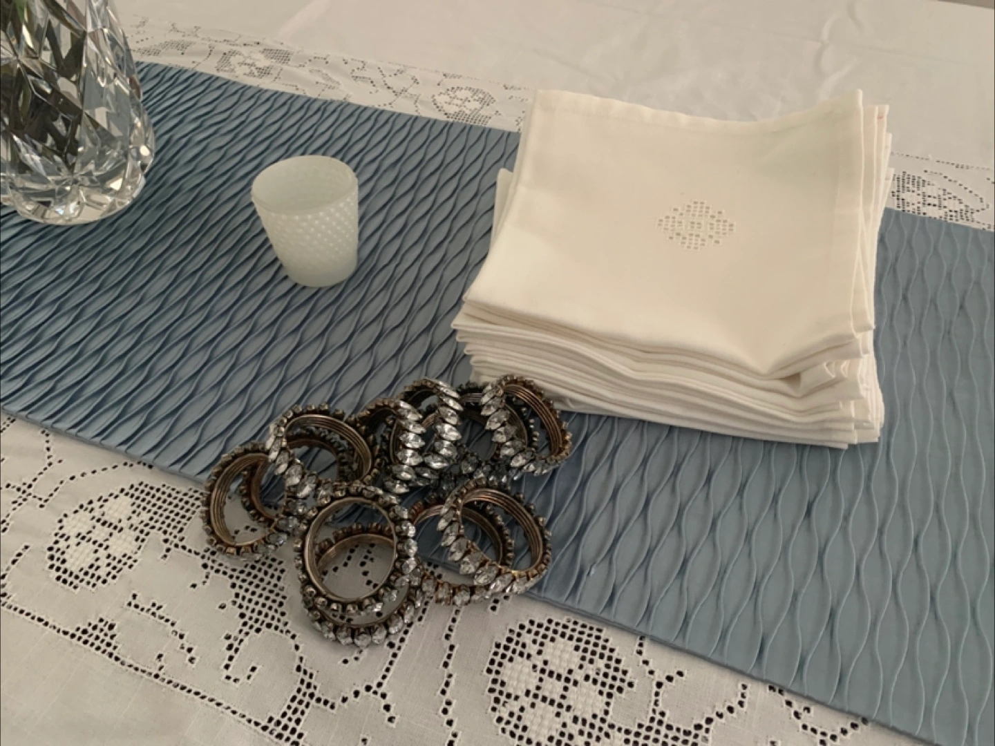 356I'm selling a set of 12 white cloth napkins. They are in great condition and would be perfect for adding a touch of elegance to your dining table. They are a classic and versatile addition to any home. Napkins $2 each, rings $1 each.
