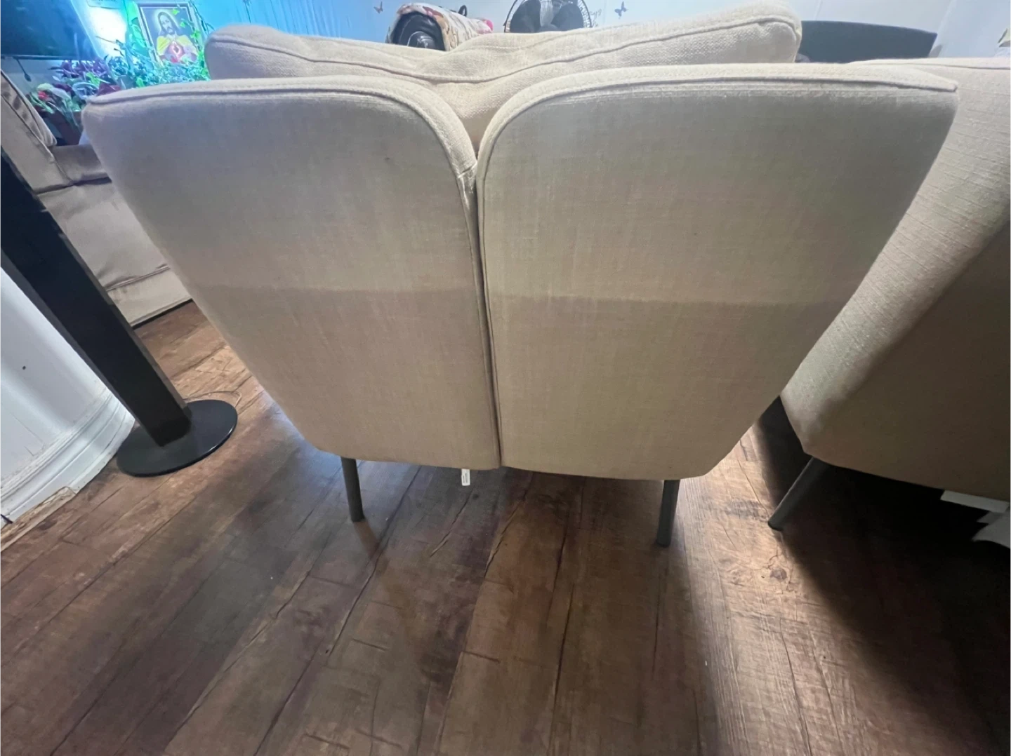 Selling a set of two accent chairs! They're a lovely beige colour and would look great in any living room or bedroom. They come with cushions as well