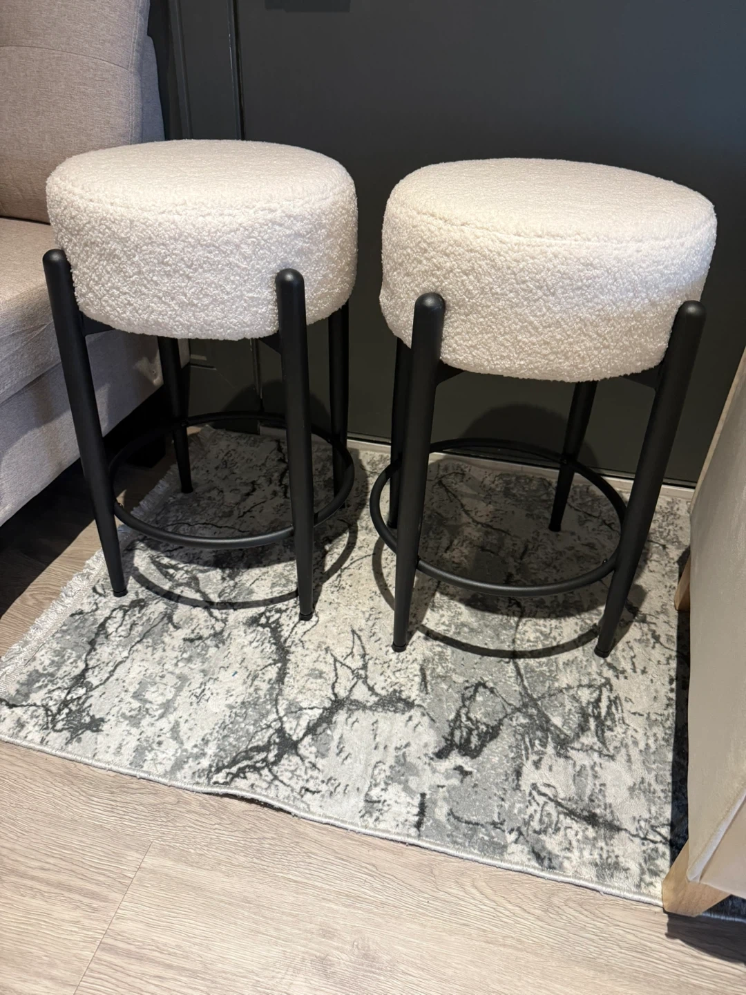 Set of 2 Brand New White Boucle Stools