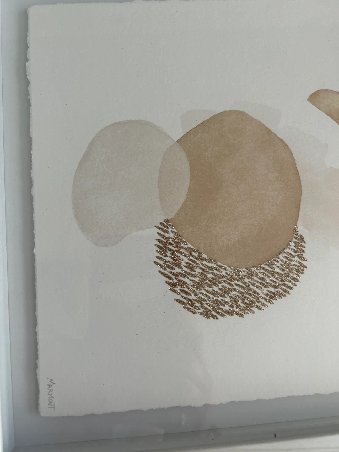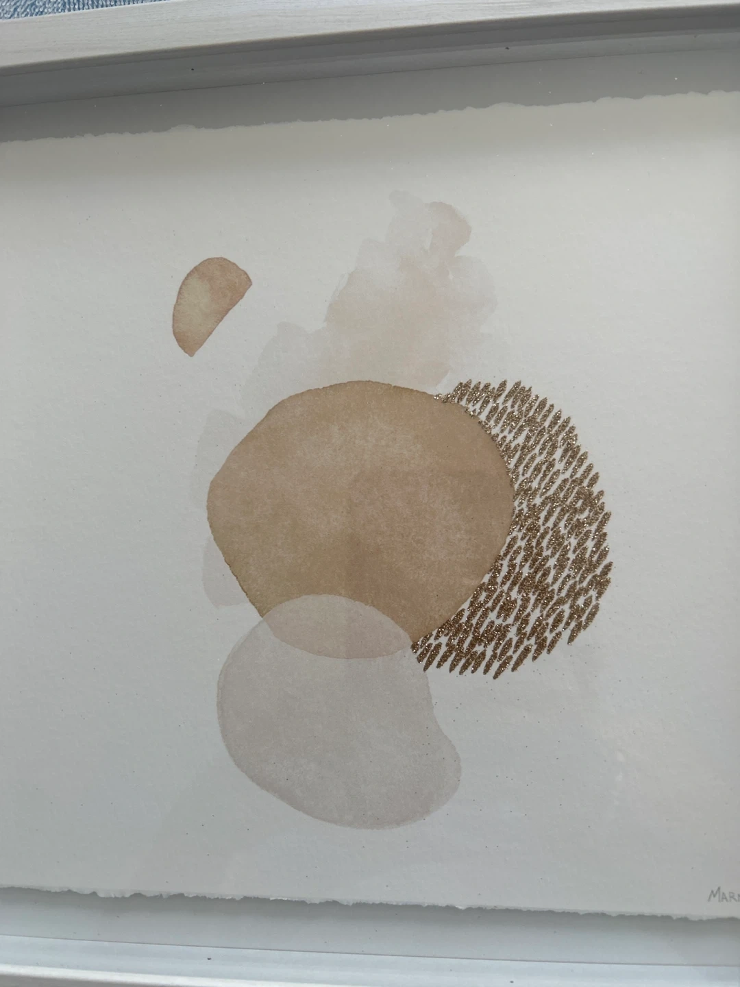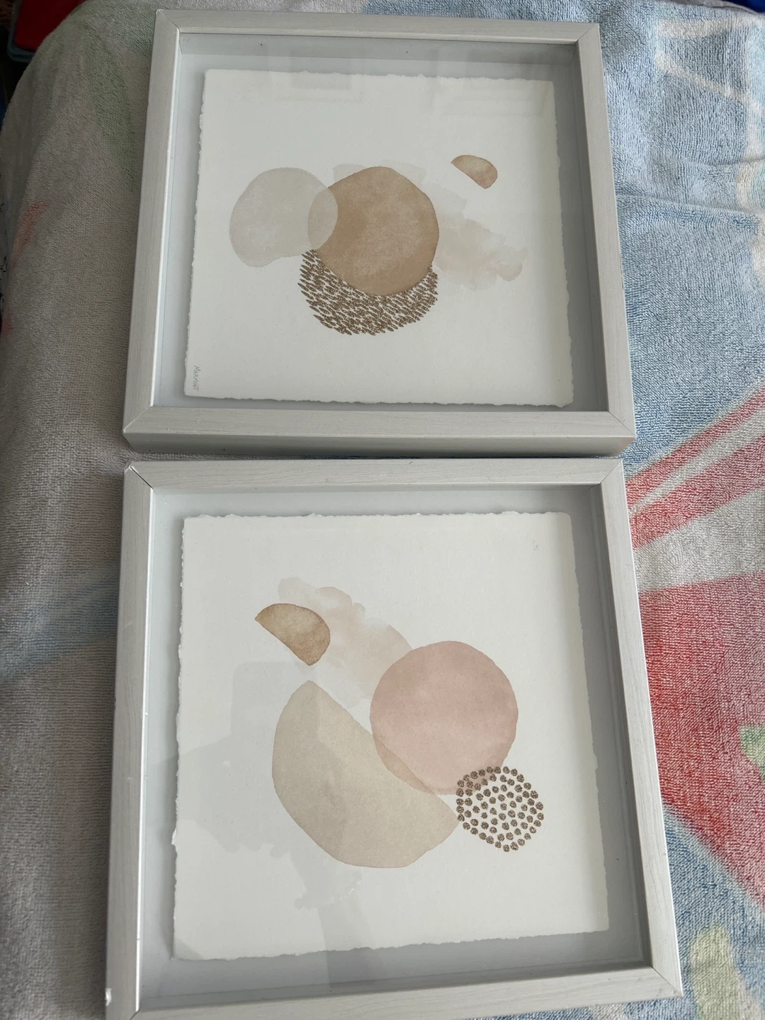 Selling a set of two framed art prints featuring abstract designs in neutral tones. These prints would add a touch of modern elegance to any room