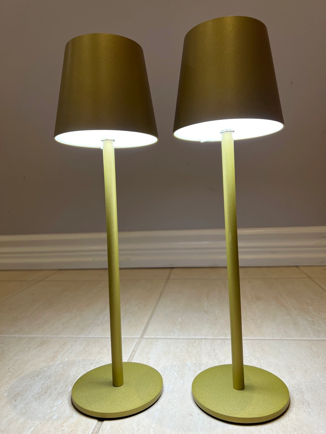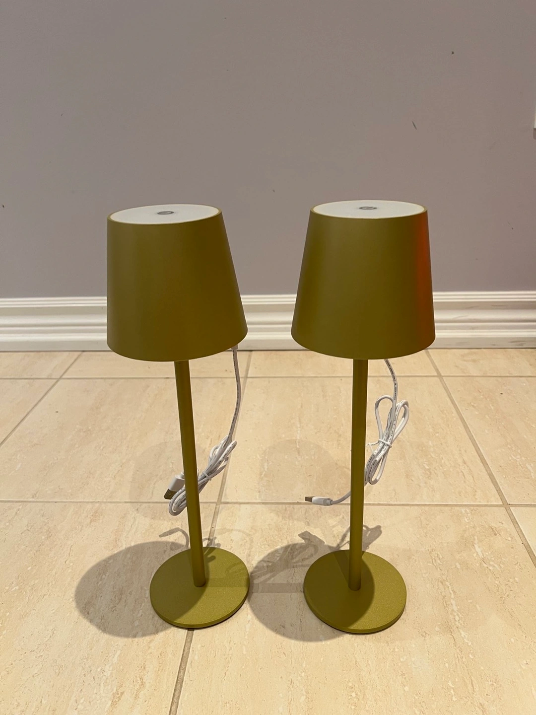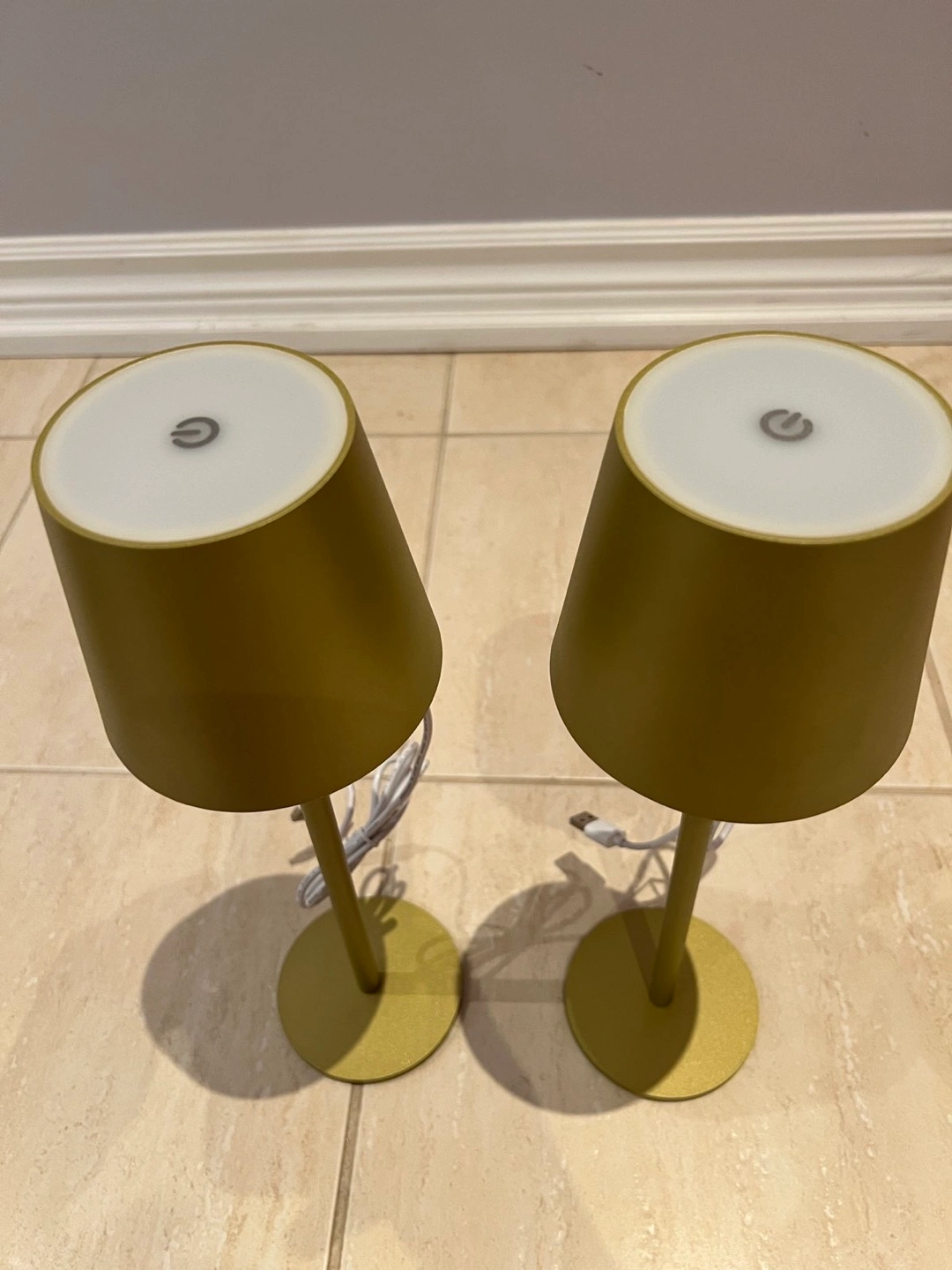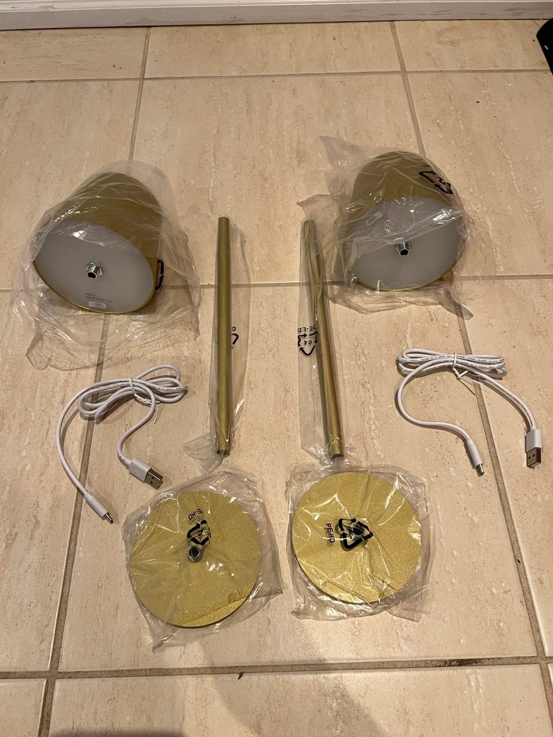 Selling a set of two gold table lamps! They come with all the components and accessories. Perfect for adding a touch of elegance to any room