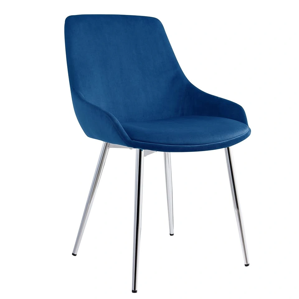 Brand new in box. The sloped back of this mid-century modern style chair adds a level of sophistication and a dash of excitement to any room. Upholstered in a luxurious velvet, the chrome-finished legs of this piece further enhance its overall allure while the sturdy frame ensures comfortable seating for guests. Approximate weight capacity is 300 lbs; seat height is 18.5” Dimensions: 21.75 x 19.75 x 32.75”H Located in Port Robinson, if the item is listed its available.