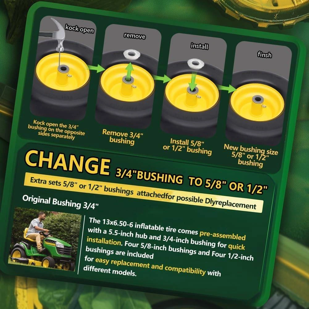 Show all🚜 set of 2 New Lawn Mower Tires (13x6.50-6) - Flat-Free! 🚜
