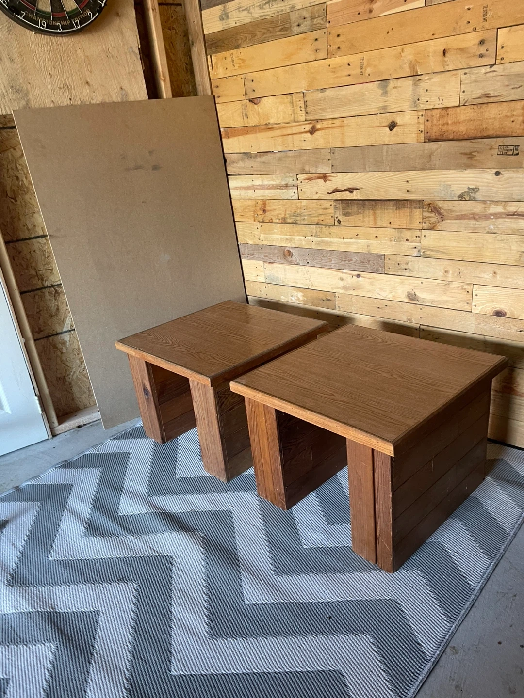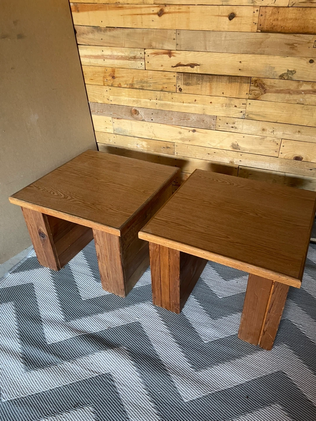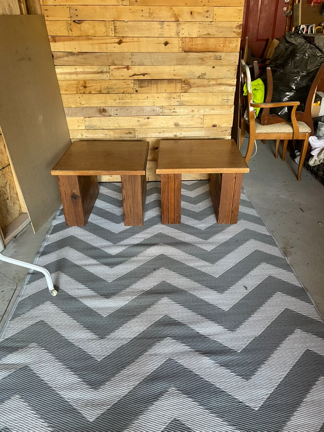 Selling a set of two solid wood side tables. They're in good condition and would be a great addition to any living room or bedroom. $ 35 each W 23” x L 23” x H 17”