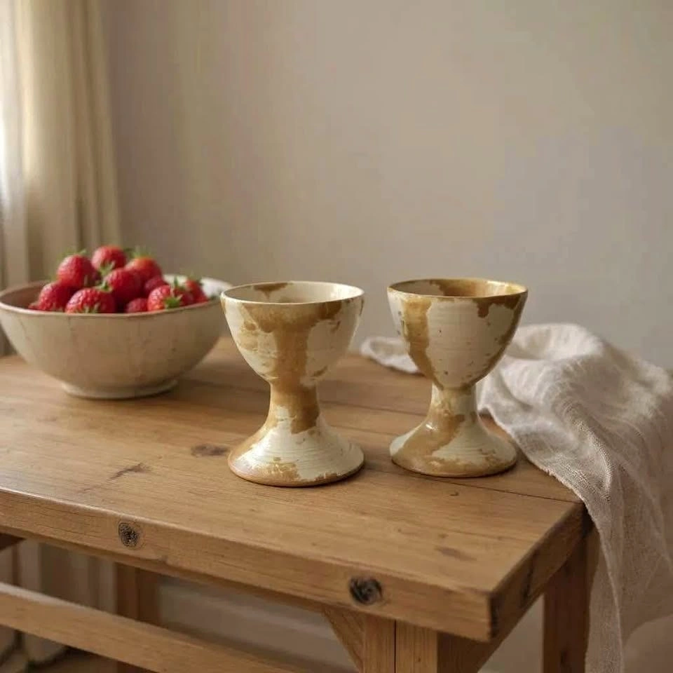 10New set of two handmade chalice pottery in beige with earth-tone colors. Pickup in Meadowlands in Ancaster.