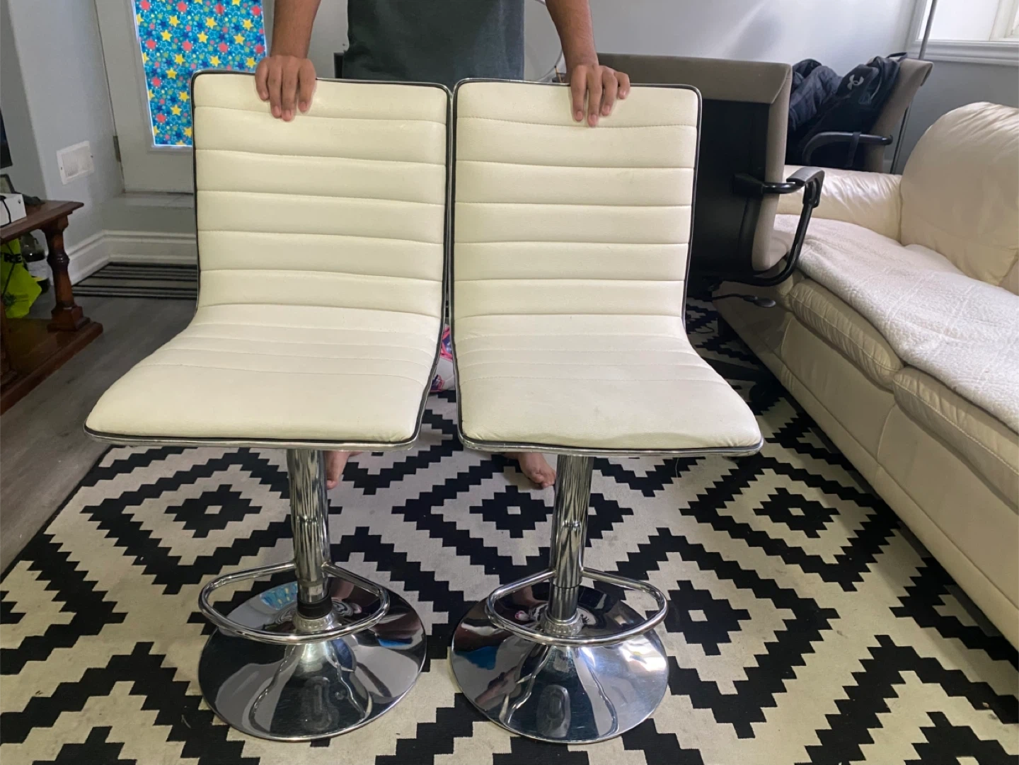 16Selling a set of two stylish white bar stools! They feature a sleek design with chrome bases and comfortable padded seats. Perfect for adding a modern touch to your kitchen or bar area. They are in great condition!