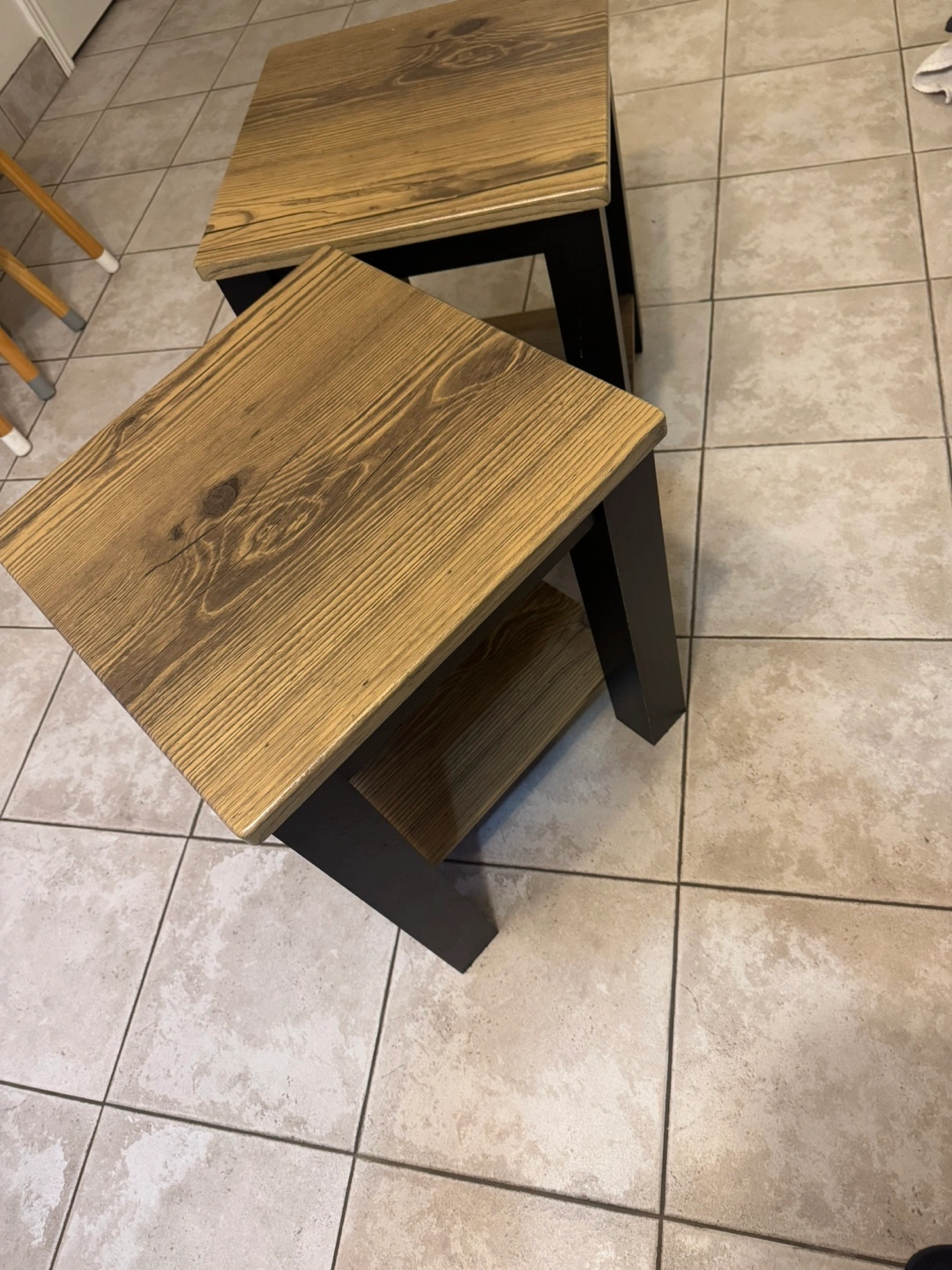 Rolling TV Stand - Black Metal Frame, Wood Top