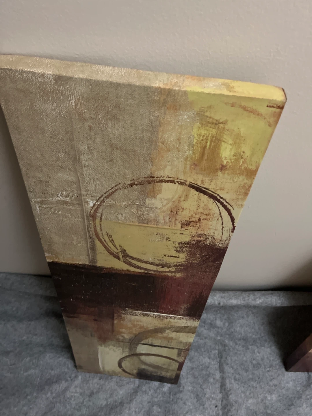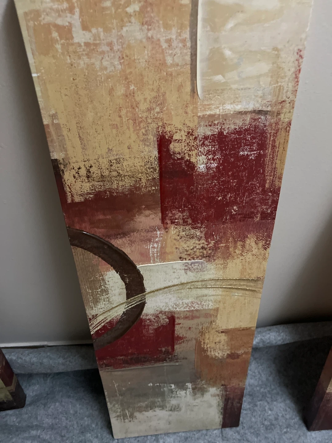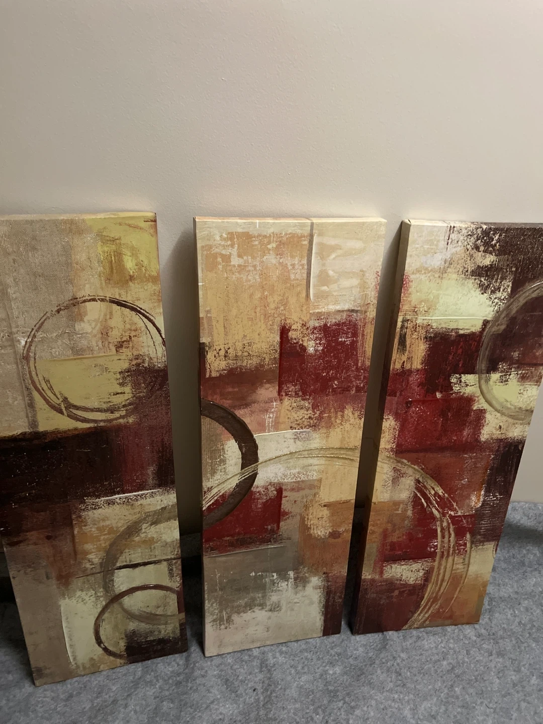 1000+Selling a set of three abstract wall art canvases! Each piece 12” x 38”. These are perfect for adding a touch of modern art to your living space or office Dufferin and Eglinton pickup. Can’t change location?