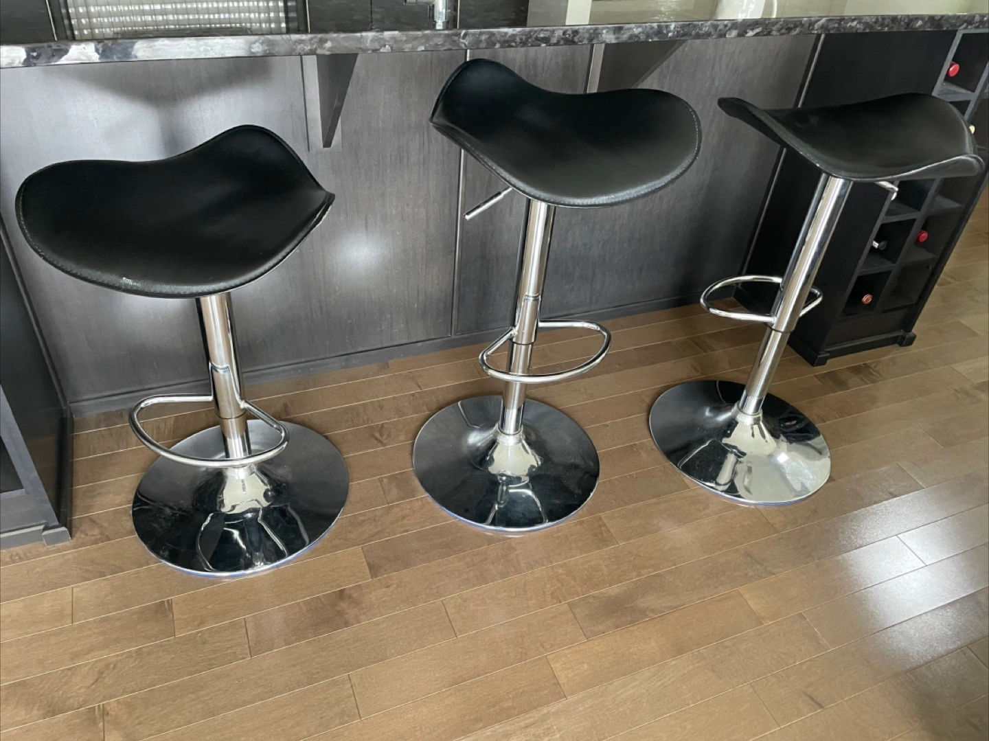 Set of 3 Bar Stools - Cream & Black